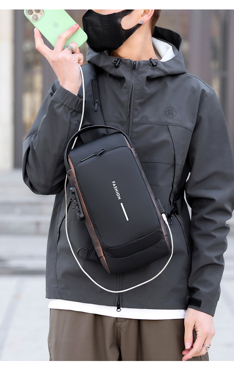 跨境男士胸包多功能密码锁机车包防水防盗男士斜挎包商务单肩包
