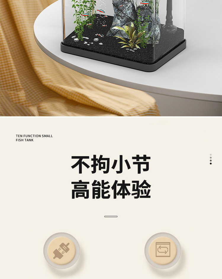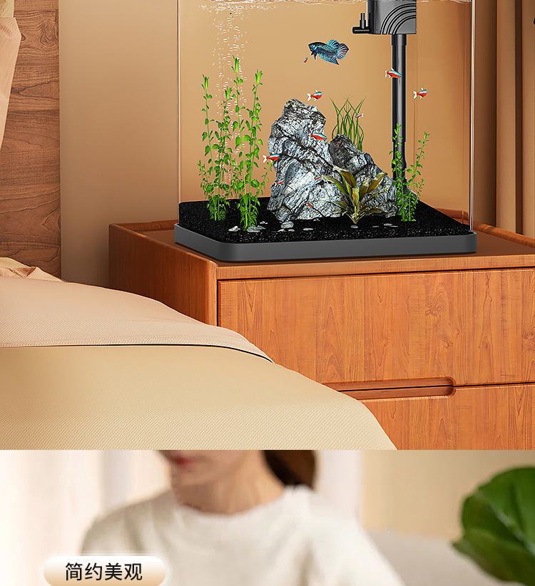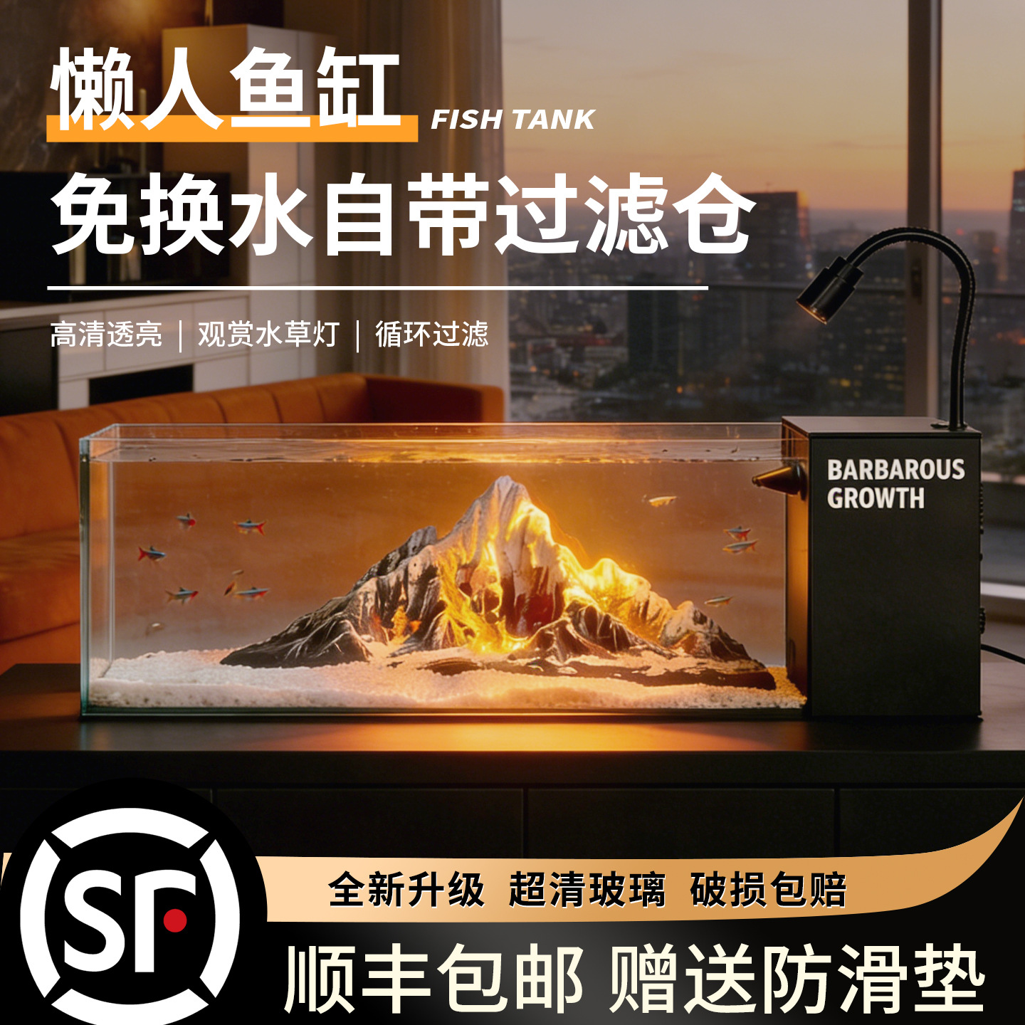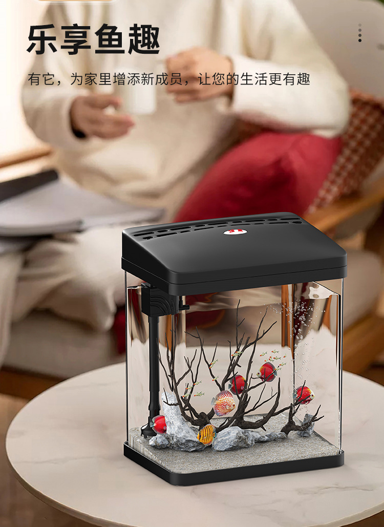 家用客厅新款侧滤溪流缸生态造景全套小型桌面鱼缸过滤制氧一体机