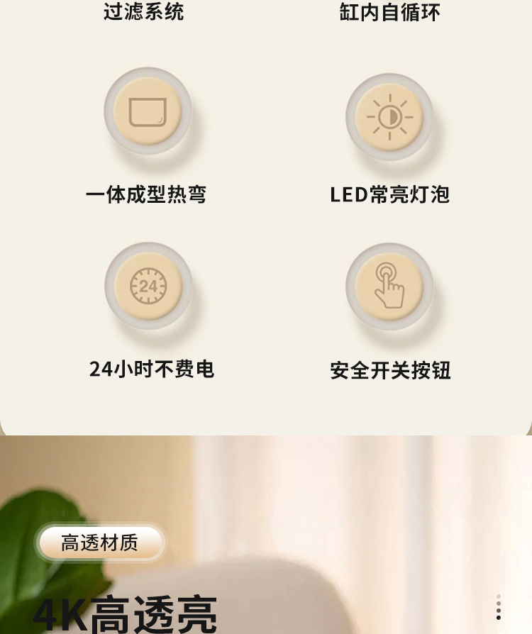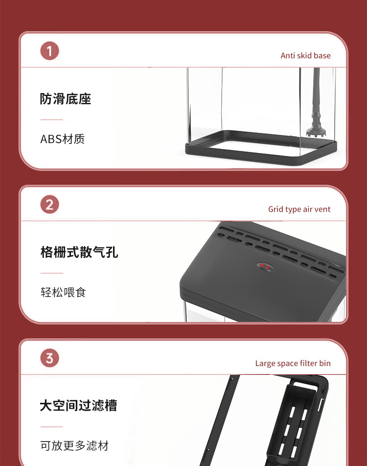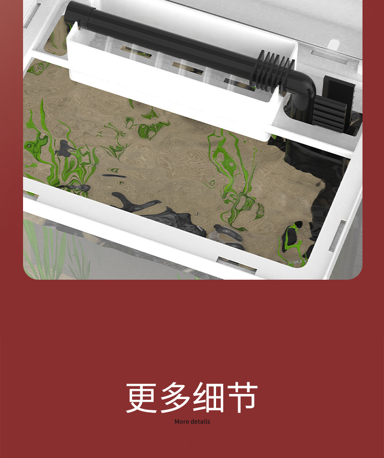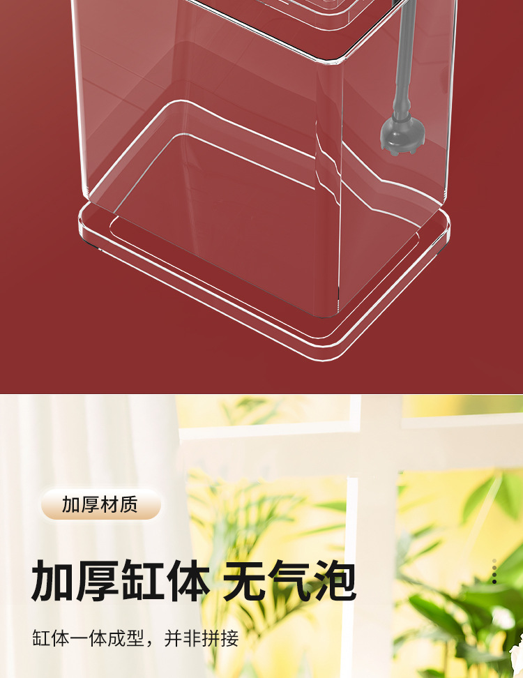フィルター付き一体型水槽、景観構築一式、一体成型小型アクリル製卓上観賞生態水槽(金魚水槽)