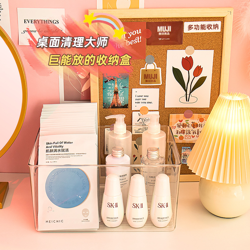 デスクトップ収納ボックス学生pet透明本化粧品収納バスケット寮シンプル収納ボックス整理棚