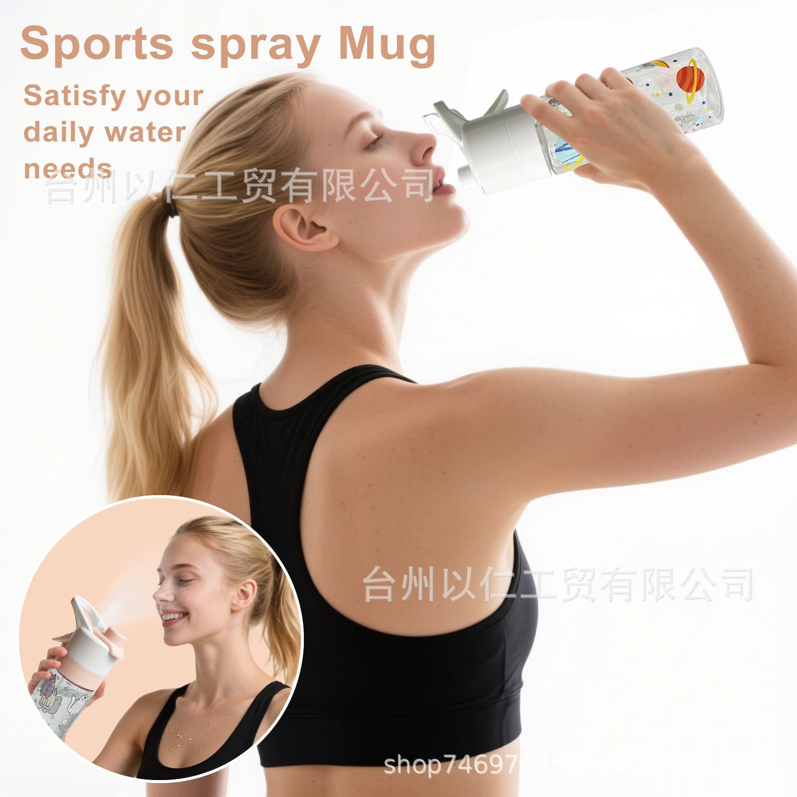 夏の大容量スポーツ飲料水補給スプレーカップかわいい柄スプレー大型ケトル男女学生プラスチックカップ