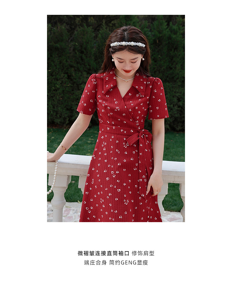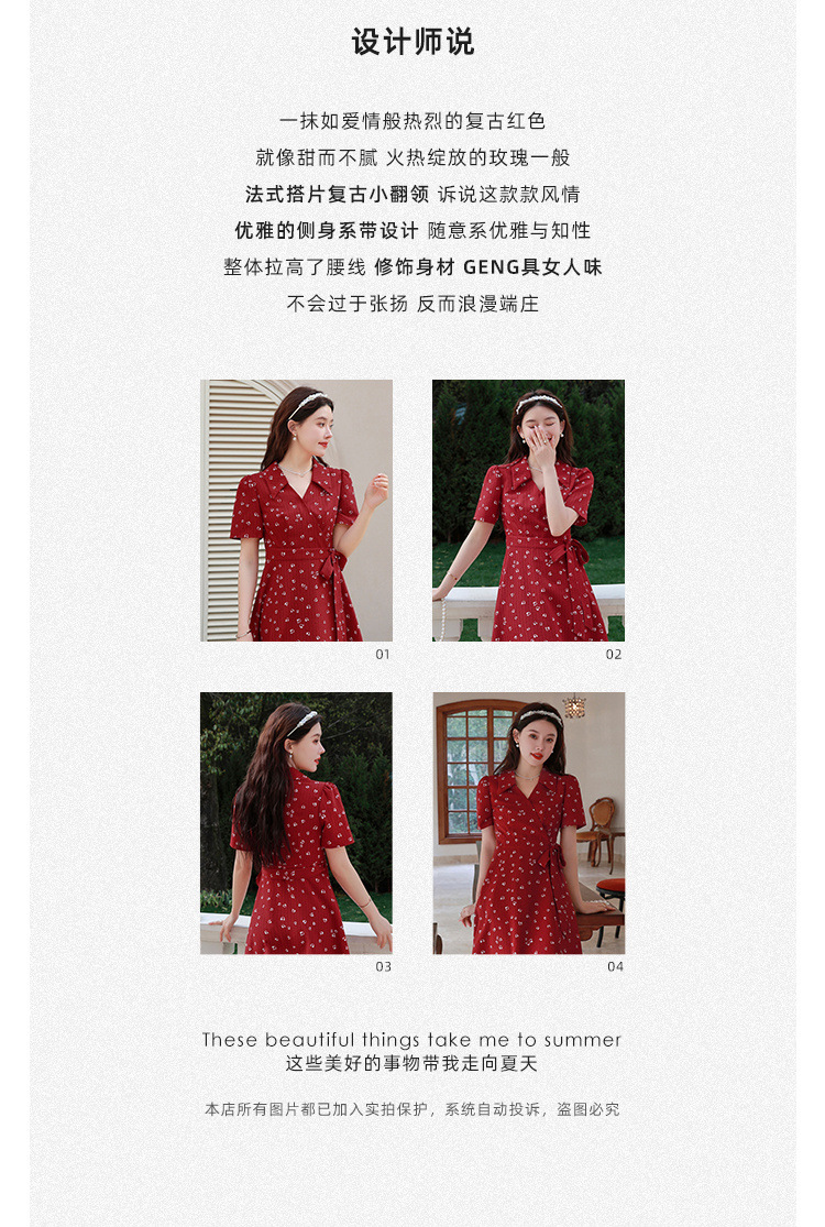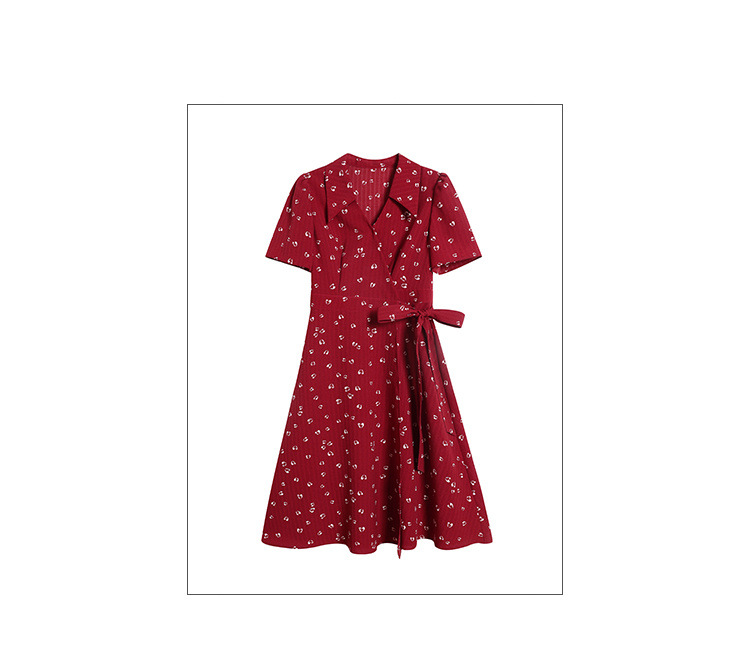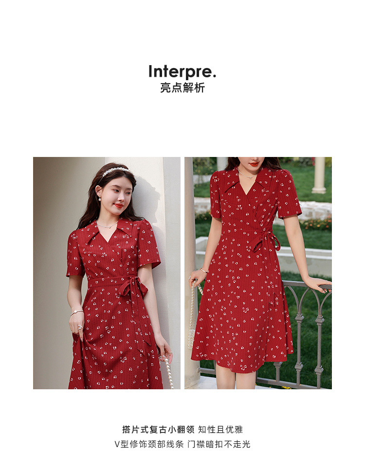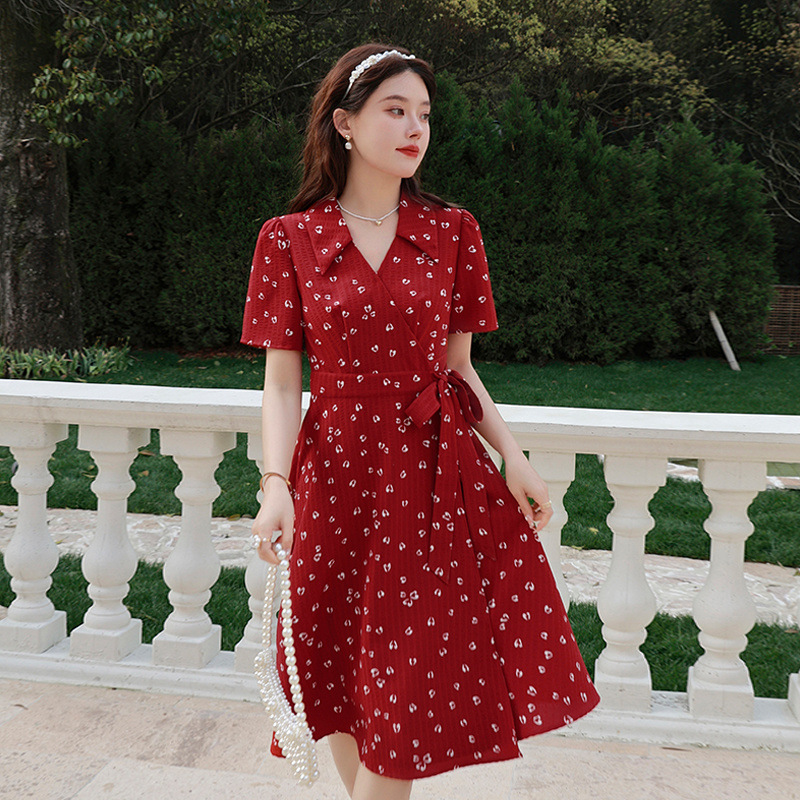 フレンチプラスサイズレディースファットmmレトロレッドAラインドレス2025夏お腹カバー痩身フレンチティーブレイクドレス