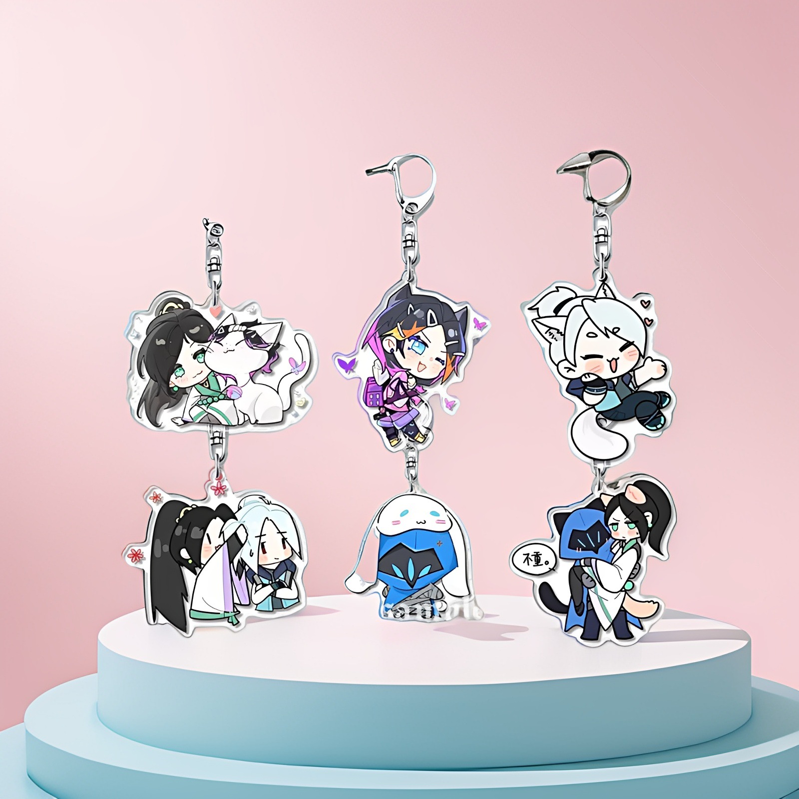 ハイ・ヤン・ヤンとグレイ・タウ・ワンの見栄えの良いアクリル両面二層キーホルダー、絶妙で超キュートでかわいいペンダント