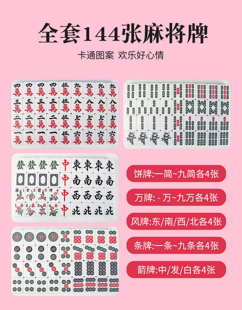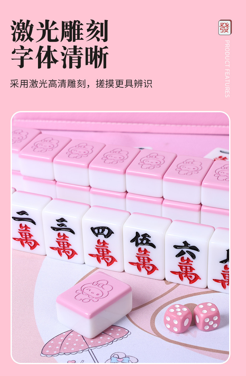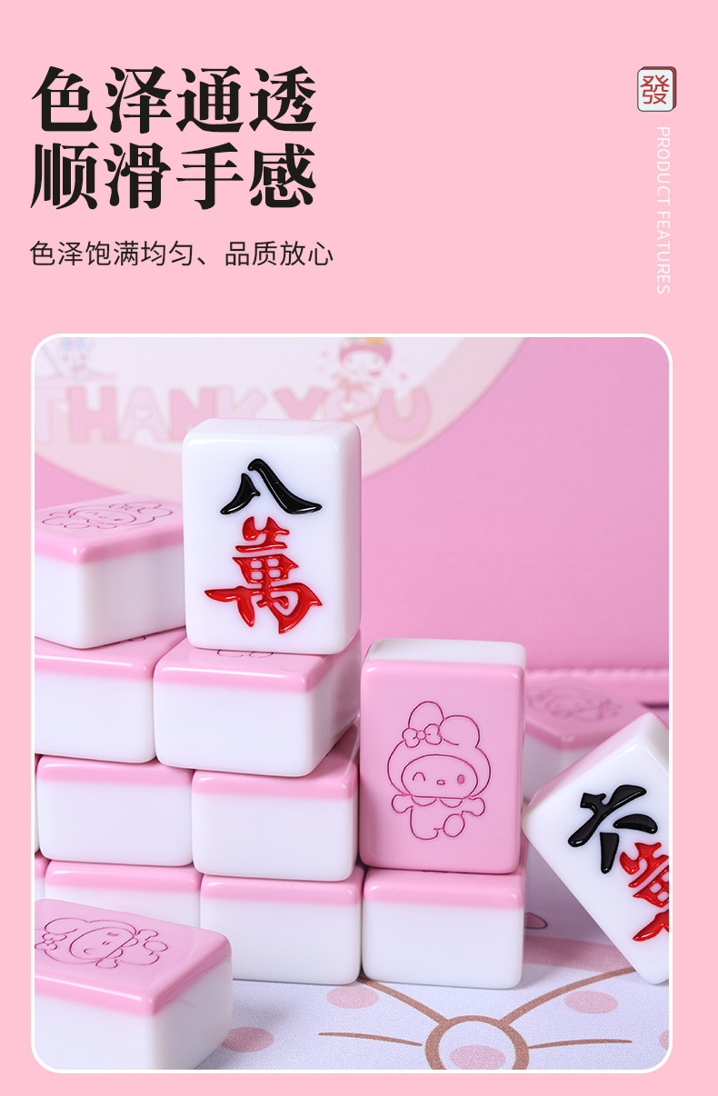 粉色可爱美乐蒂卡通家用手搓麻将牌送礼品定 制个性麻将中大号