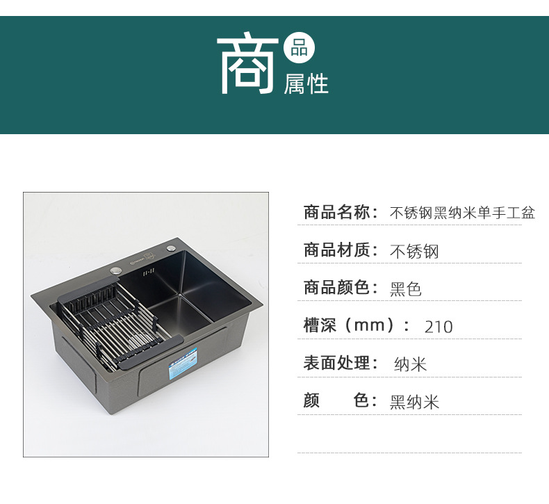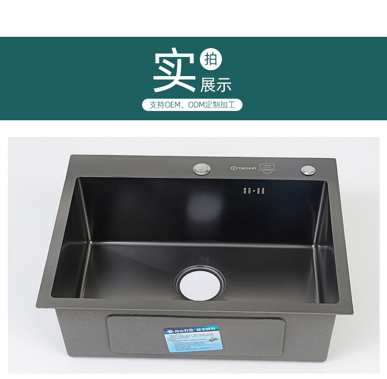 洗い物台用単槽ブラックナノ一体型手作り台下設置型洗面器sus304キッチンステンレス製シンク食器洗い槽
