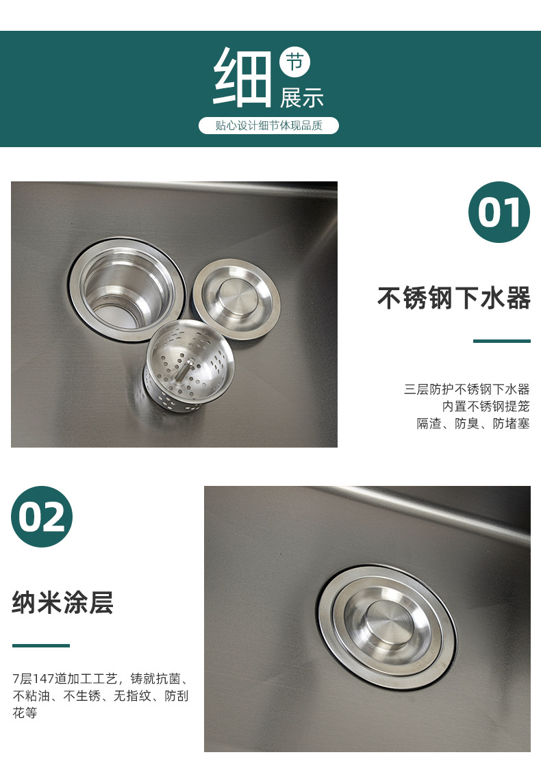 キッチンシンク大型シングルシンクアンダーカウンターシンク家庭用ナノメーカー卸売大容量ステンレス製キッチン大型シングルシンク