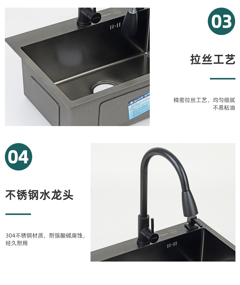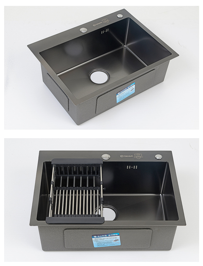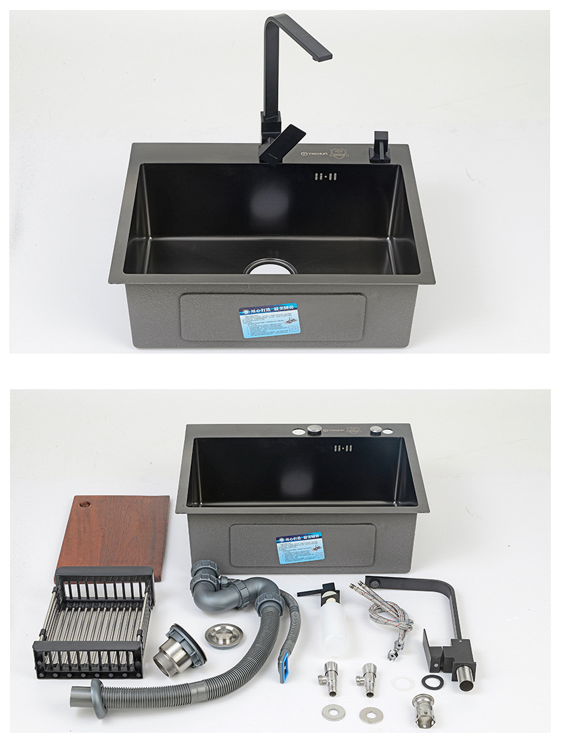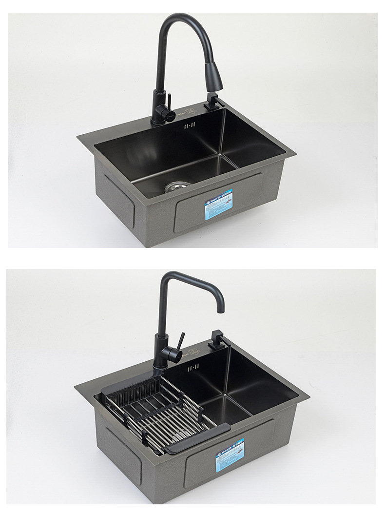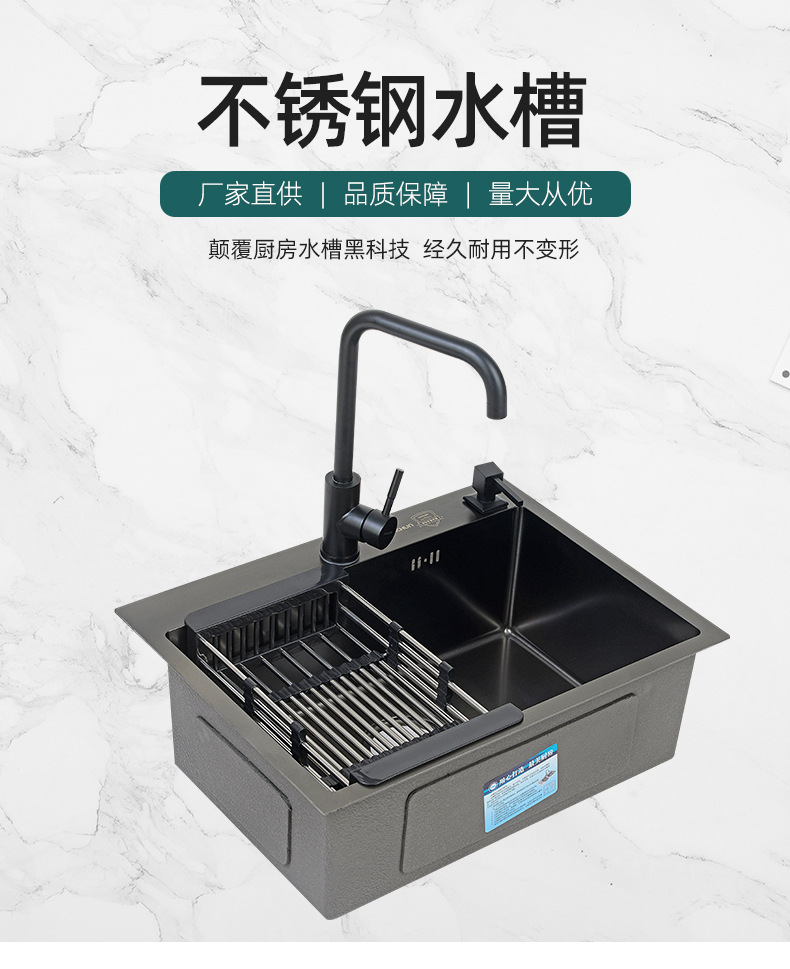 ブラックナノキッチン手作り洗面器家庭用増粘手洗い食器洗いシンクレンタルルーム304ステンレス鋼シンク
