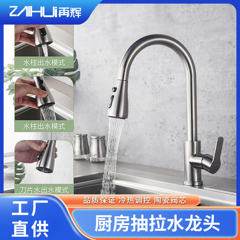 卸売キッチン蛇口 304 引き出し式ユニバーサル伸縮式家庭用シンクシンクブラシ付き温水蛇口