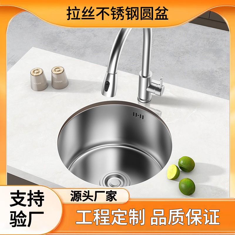 304ステンレス製洗面台 家庭用 小型キッチン キャンピングカー向け 輸入直販 家庭用丸型バーテーブルシンク