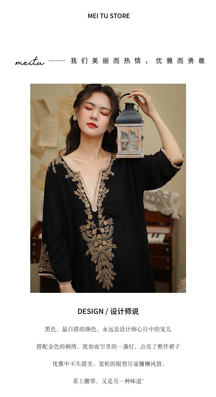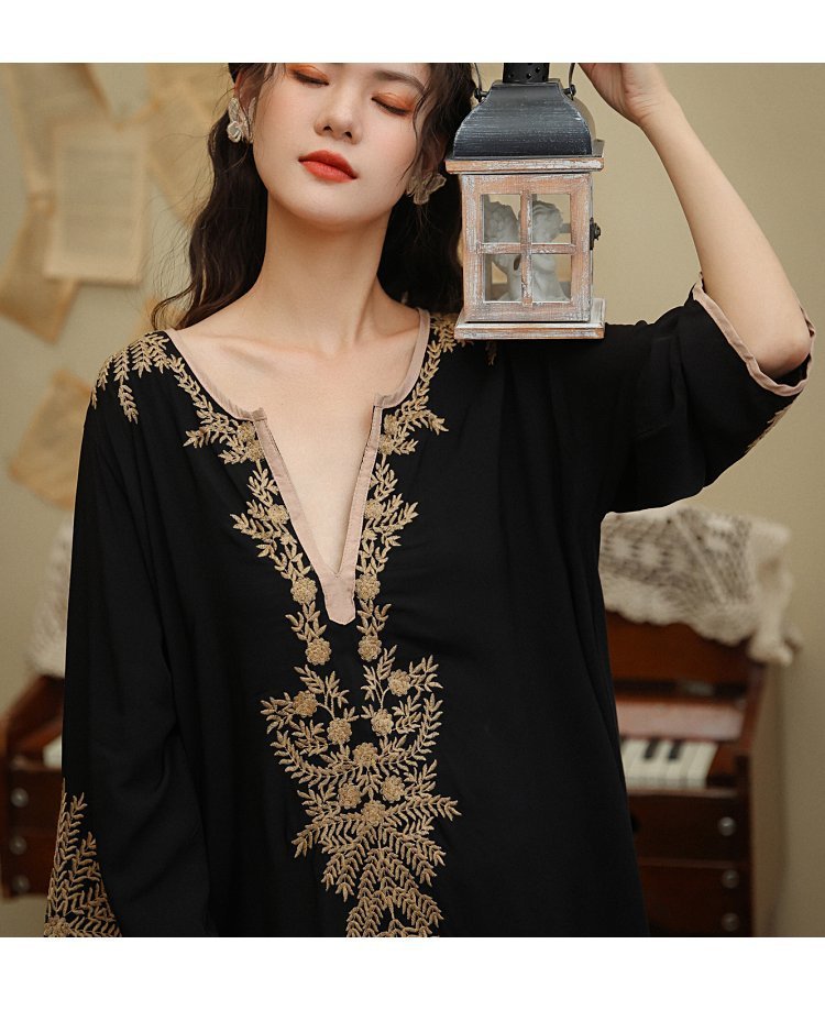 エスニック風刺繍ウエスタンスタイルコットンボヘミアンレイジースイートルーズディープVネック高価