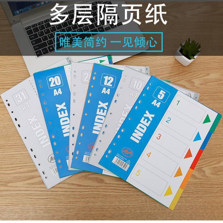 A4彩色快劳索引分类页分类卡11孔分类纸塑料字母数字多层隔页纸