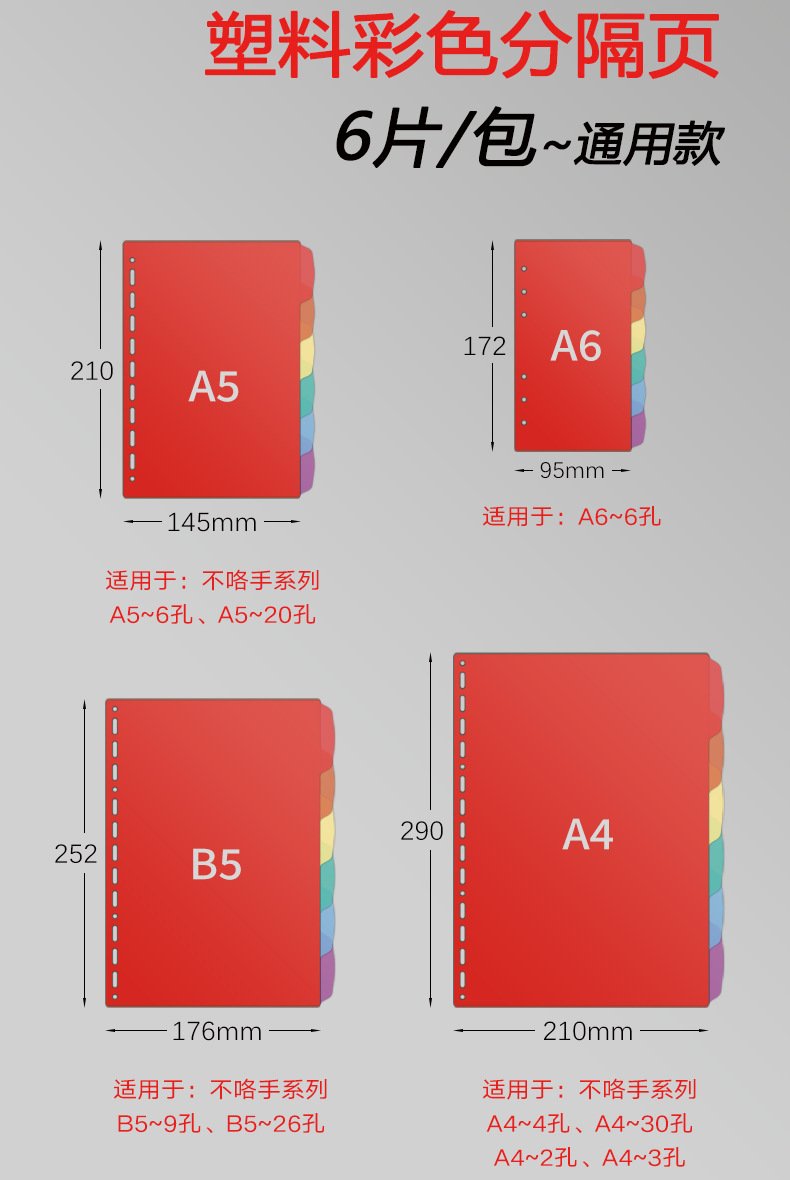 ユニバーサルルーズリーフページネーション半透明プラスチック A4 ラベル A5 カラー分類セパレーター B5 分離カタログ A6 ハンドブック