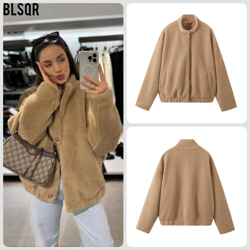欧米風快適カジュアルなゆったりスタイル2024秋冬レディースルーズフリースボンバージャケット8YS