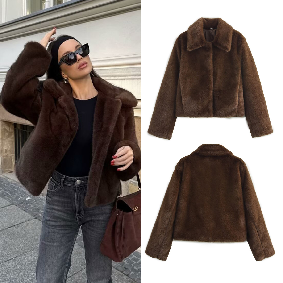 貿易婦人服卸売 2025 春と秋の新カジュアル毛皮一体型ラペル両面ジャケット B88681
