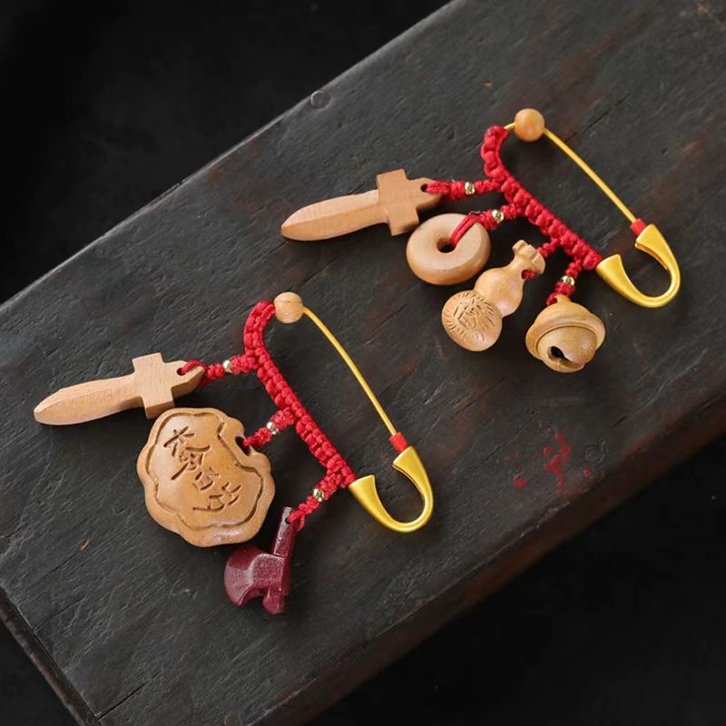 ベビーピンピーチウッドソード斧ナイフ犬歯ピーチコア豚骨干支アンバックル妊娠中の母親のためのジュエリーペンダント