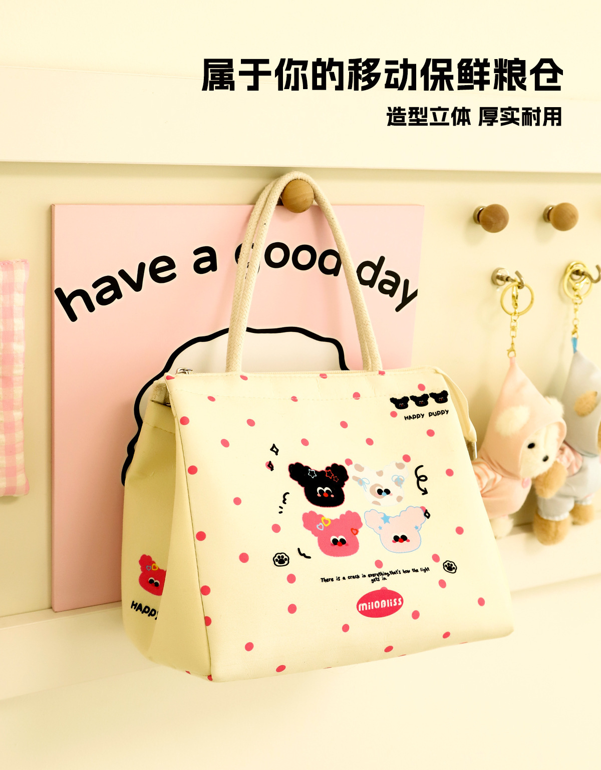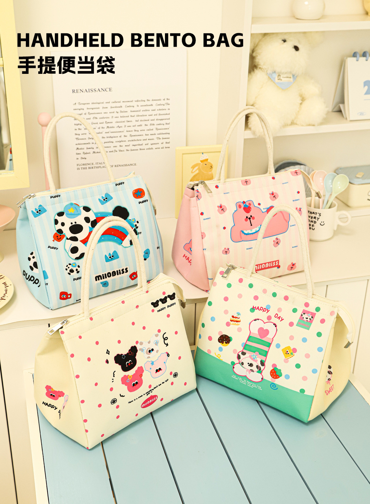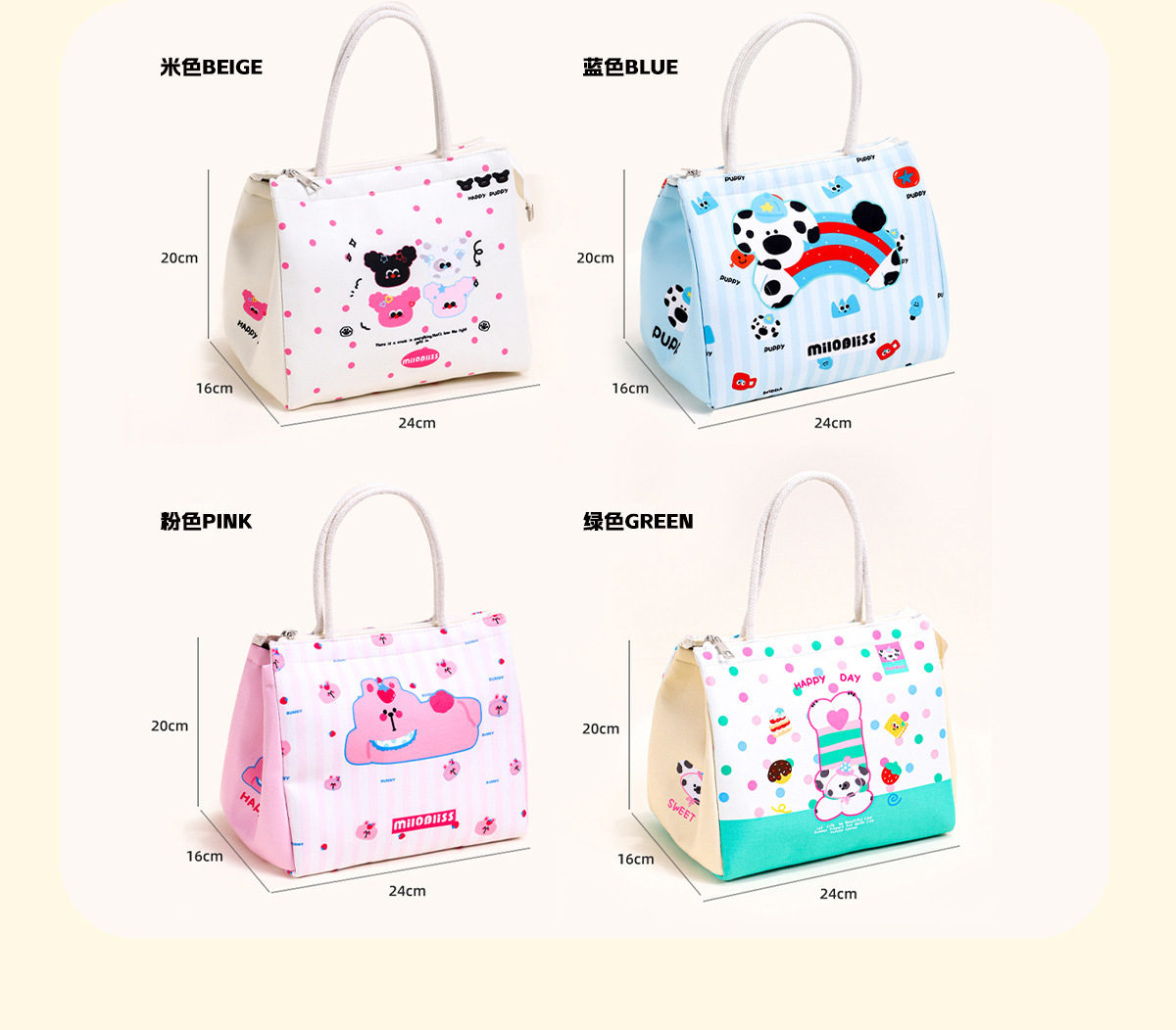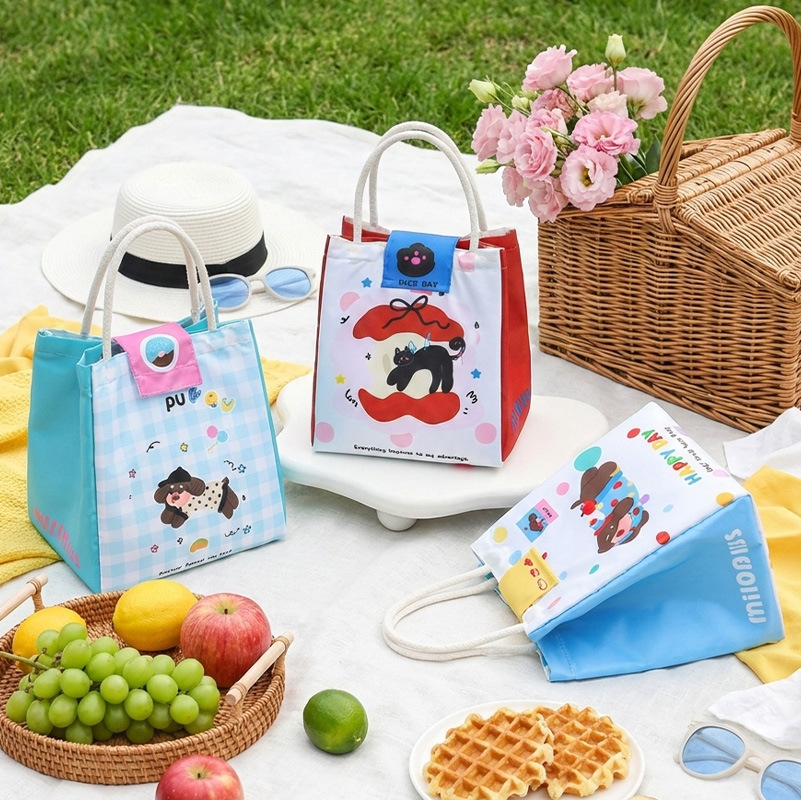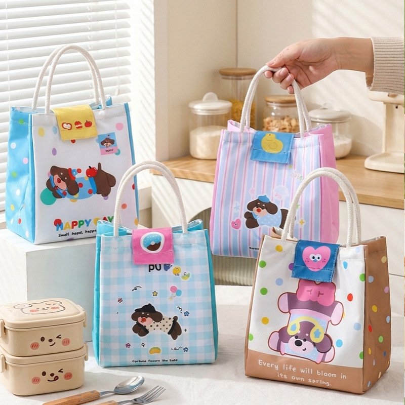 饭盒袋手提包小猫小狗保温包上班族大容量便当包实用保鲜野餐包