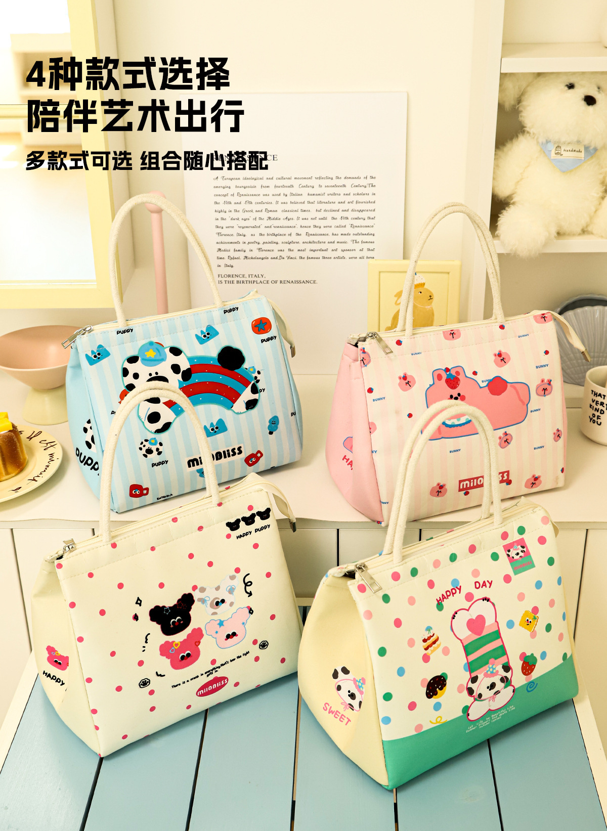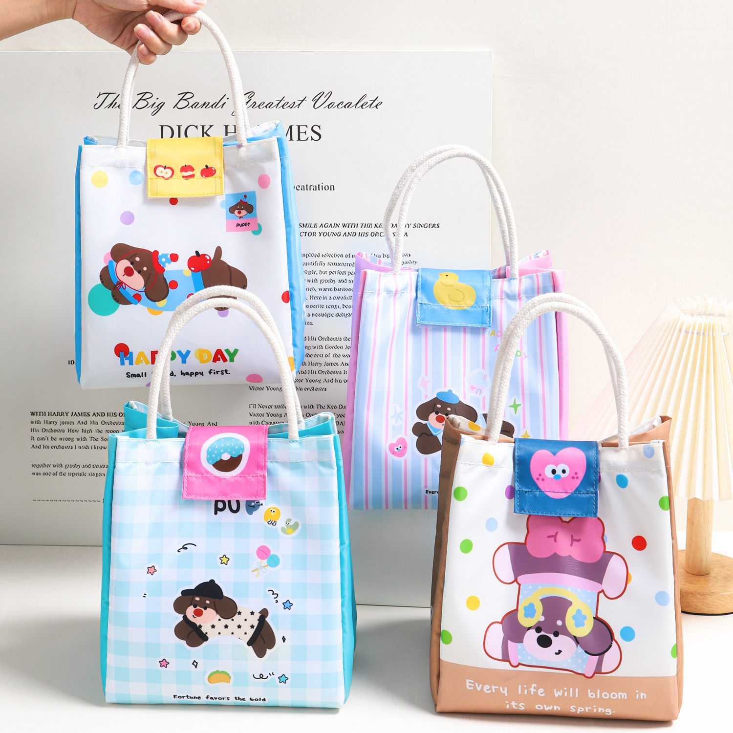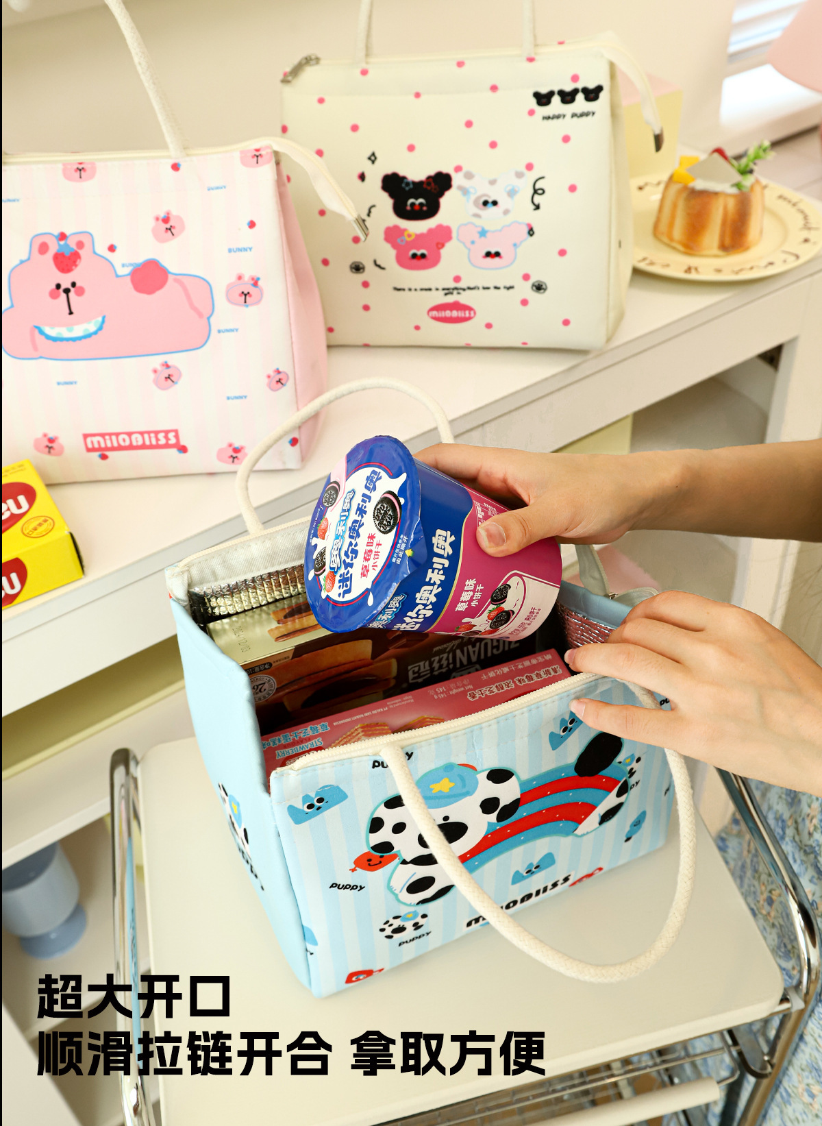 饭盒袋手提包小猫小狗保温包上班族大容量便当包实用保鲜野餐包