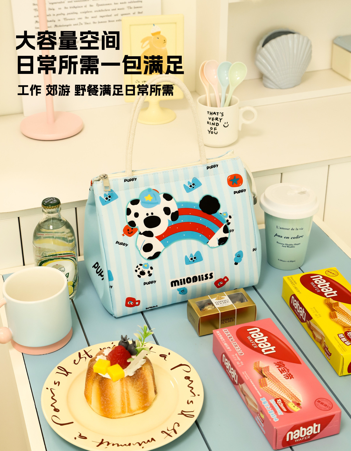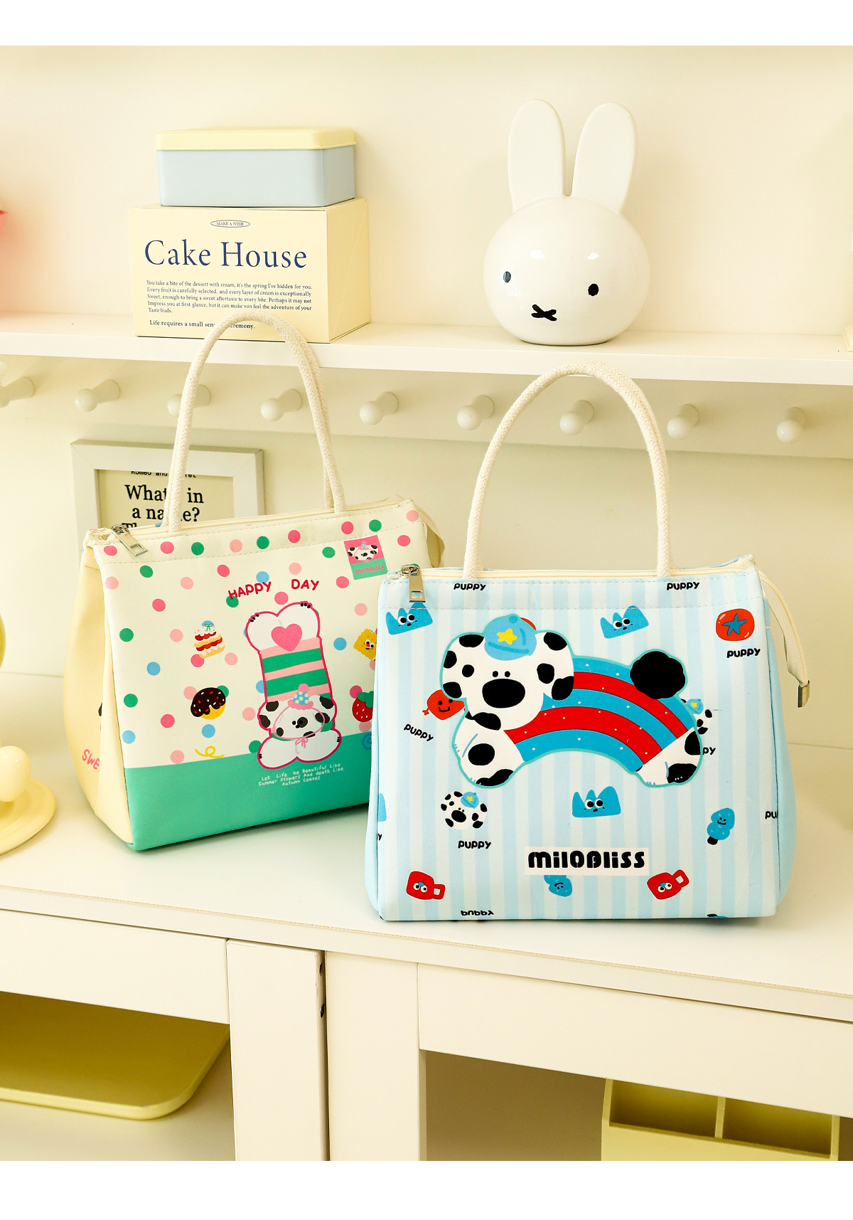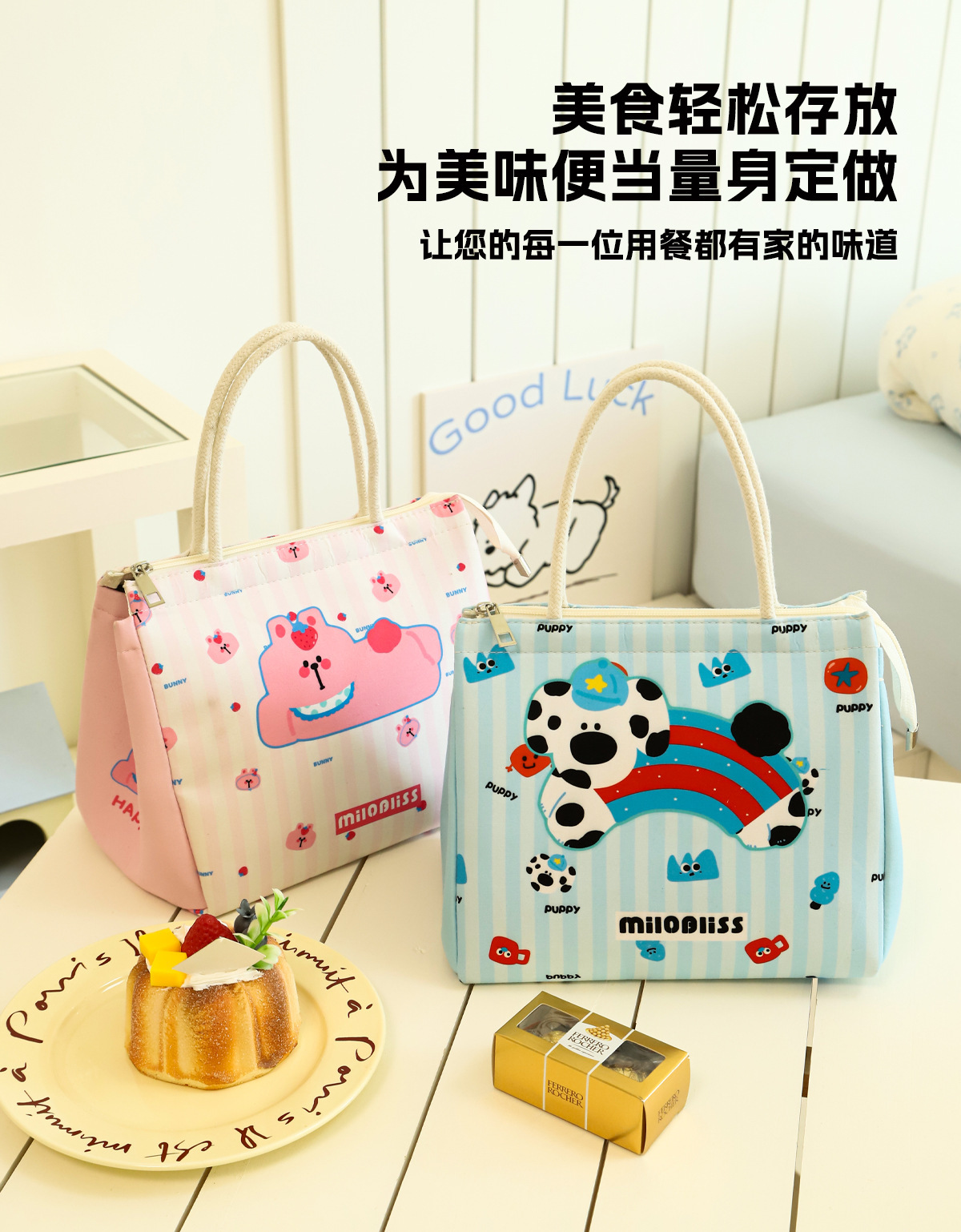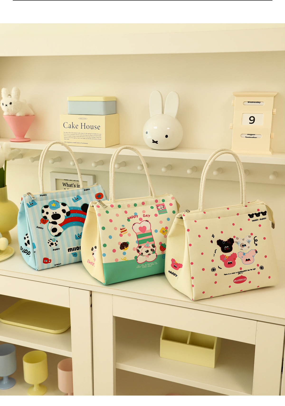 饭盒袋手提包小猫小狗保温包上班族大容量便当包实用保鲜野餐包