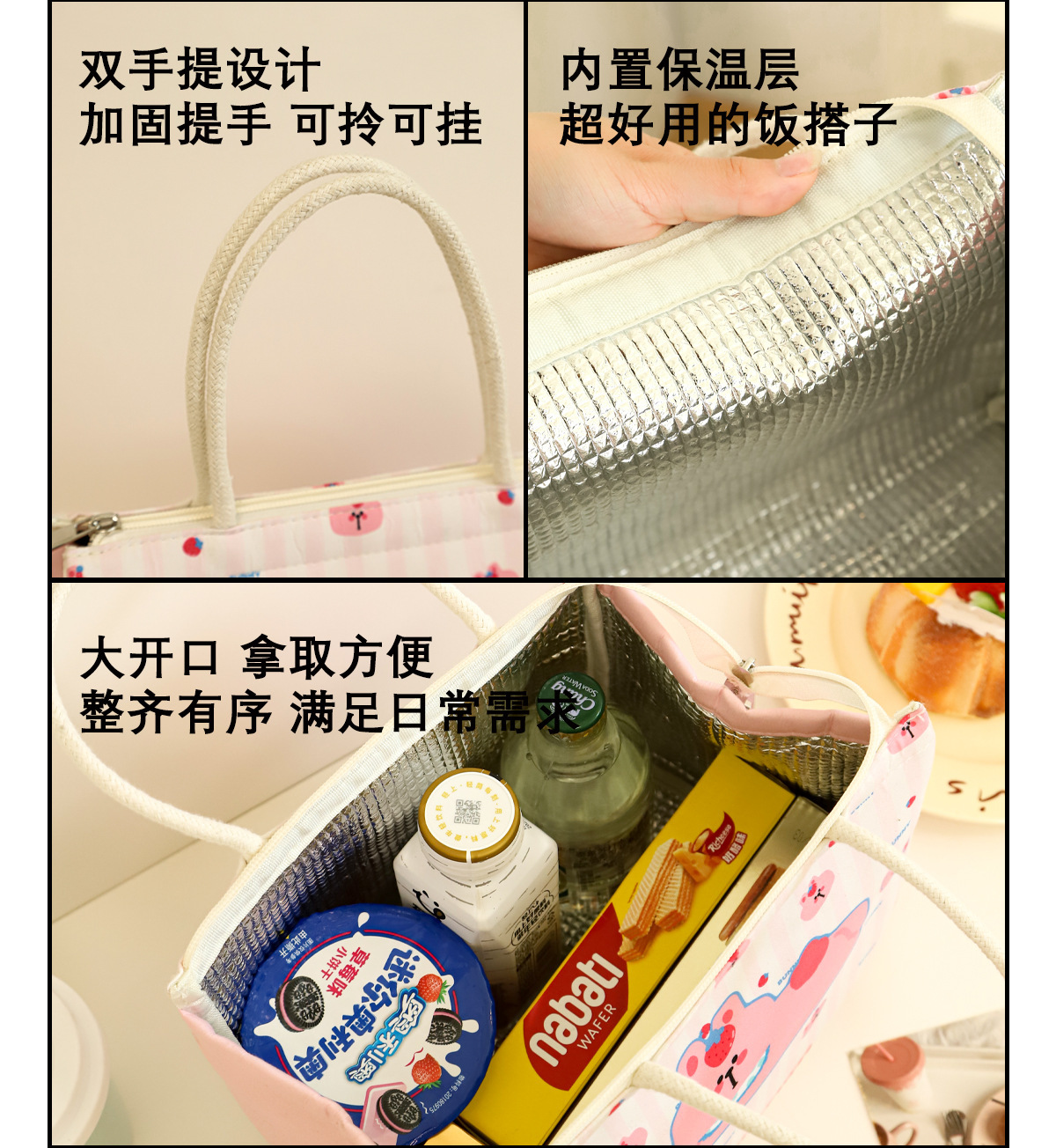 可爱保温饭盒袋学生班族带饭保温包手保温袋高颜值加厚铝箔便当包