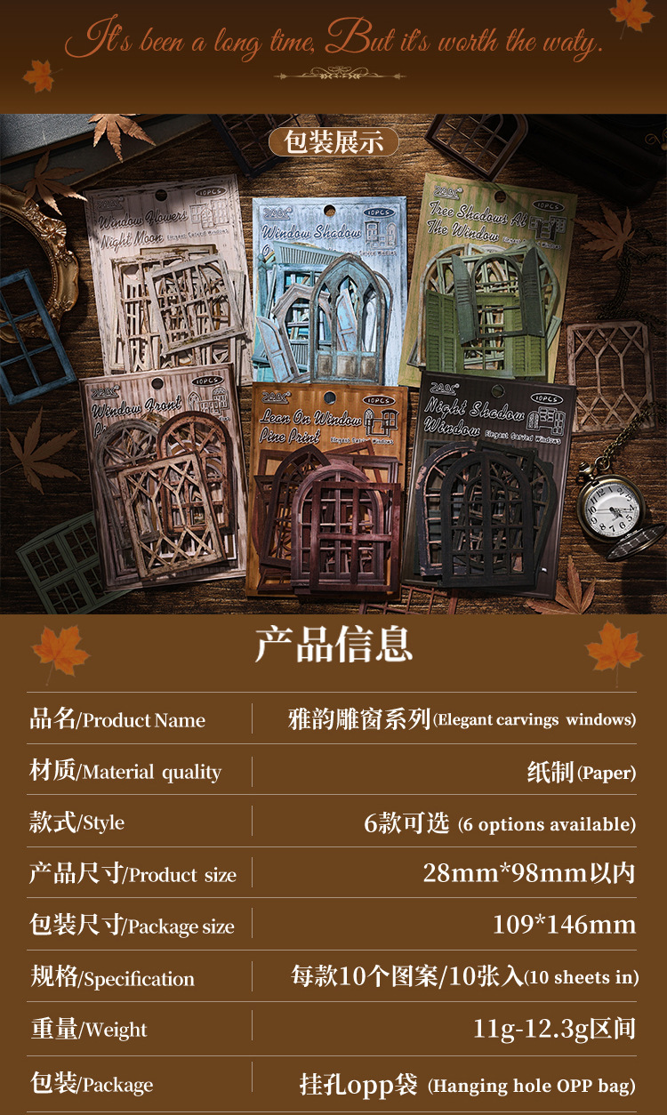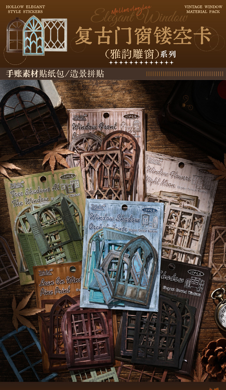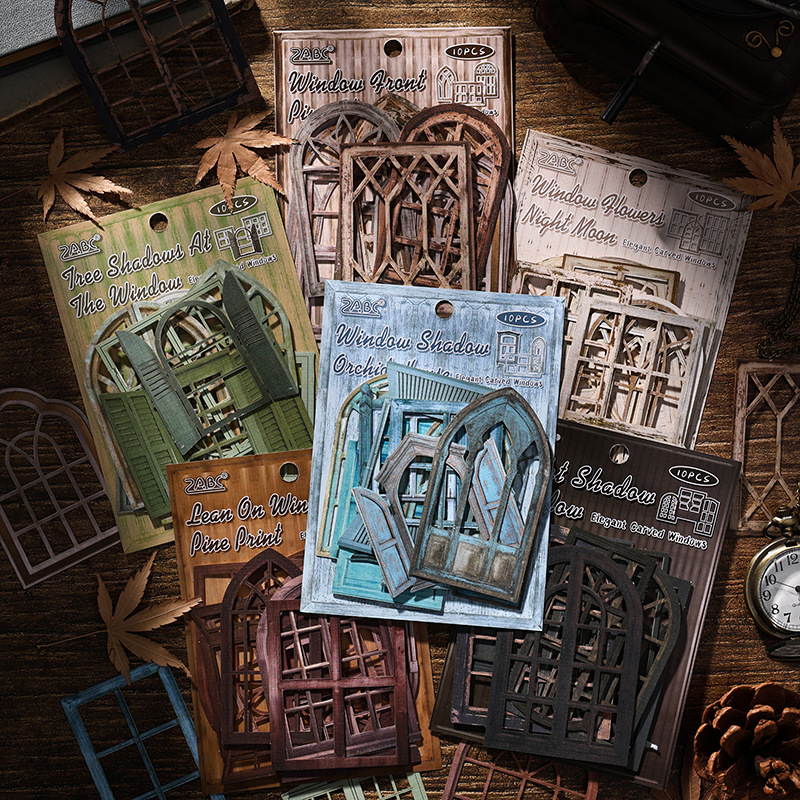 ZABC素材紙 Yayan 雕刻窓シリーズ 中空ドアと窓ハンドブック装飾素材 10枚入り 6種類からお選びいただけます