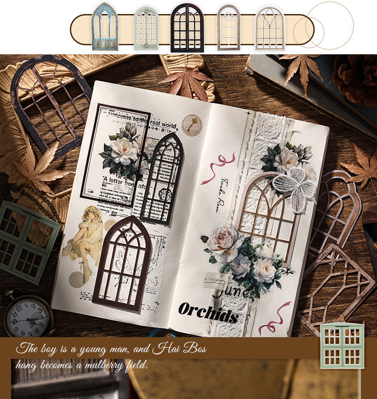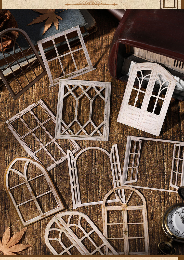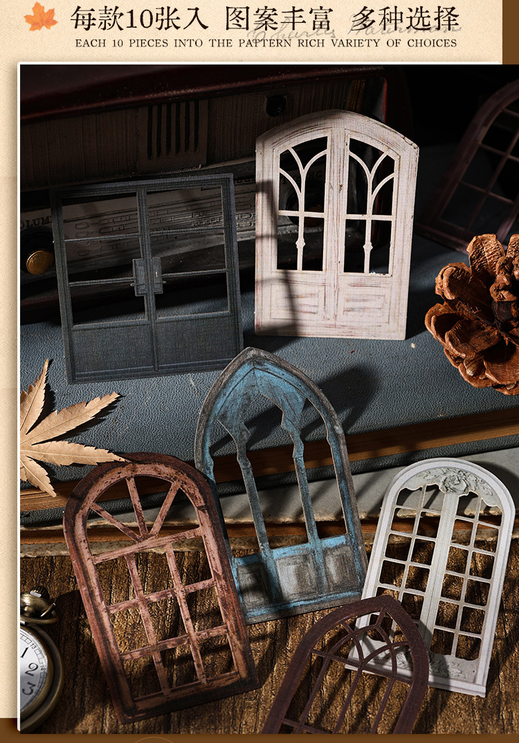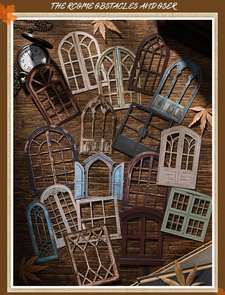 复古窗户素材纸造景装饰拼贴画diy手账咕卡镂空打底拼贴画手帐贴