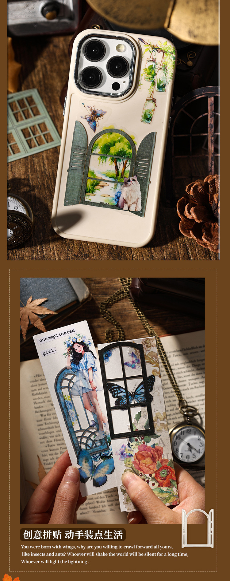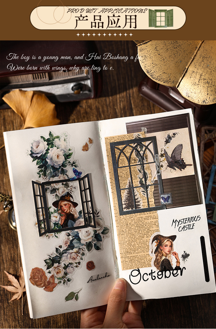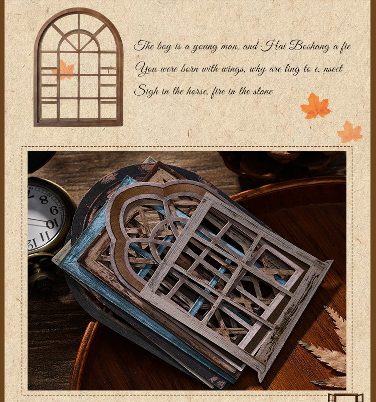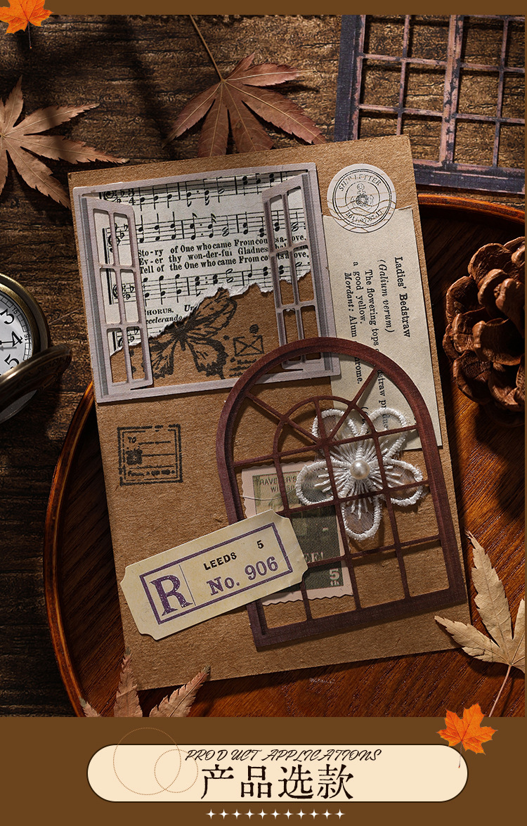 复古窗户素材纸造景装饰拼贴画diy手账咕卡镂空打底拼贴画手帐贴