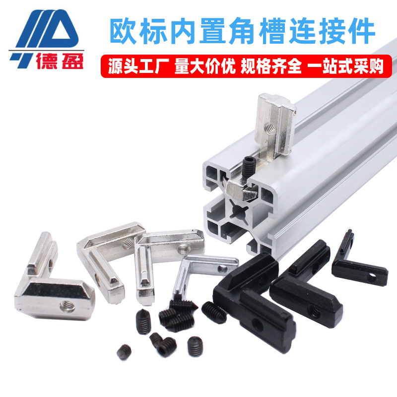 欧標アルミ形材部品2030 40 45銀色内蔵角溝接続部品黒色直角接続部品卸売り