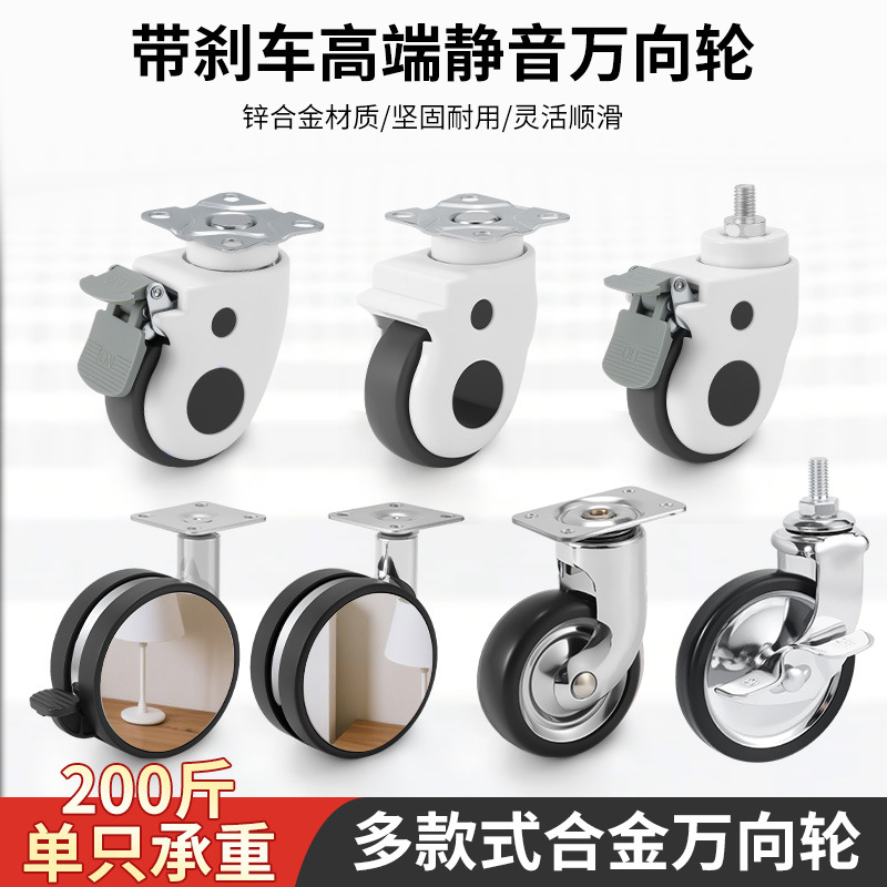 万向轮工业脚轮带刹车滑轮家具通用2寸3寸移动转向滚轮子静音耐磨