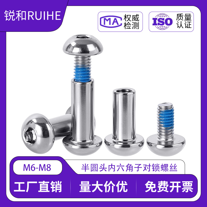 镀铬半圆头内六角对锁螺丝蘑菇头点胶螺钉子母铆钉对接螺丝钉M6M8