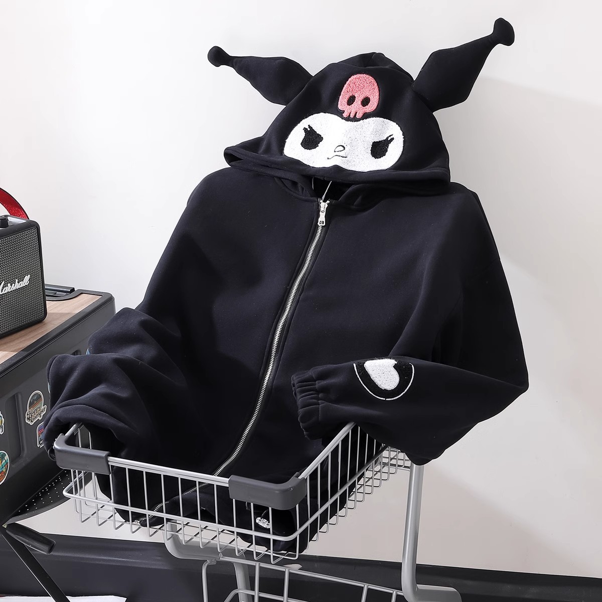 スティッチの漫画のパーカーの男性の秋冬のゆったりしているクロミデザイン感の小さい大衆のいちごの熊のファスナーの青少年のコート