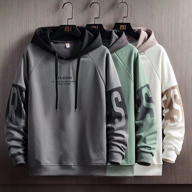 メンズ秋冬の帽子付きのゆったりしたアルファベットのプリントプルオーバー