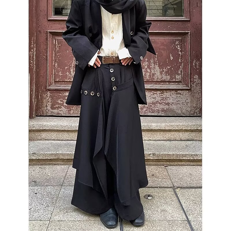 新中国式キュロット男性レトロ高級感ズボンスカート大衆デザイン感山本耀司風ズボンスカート垂れ下がった感のあるワイドパンツ