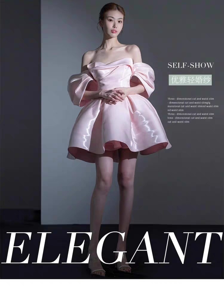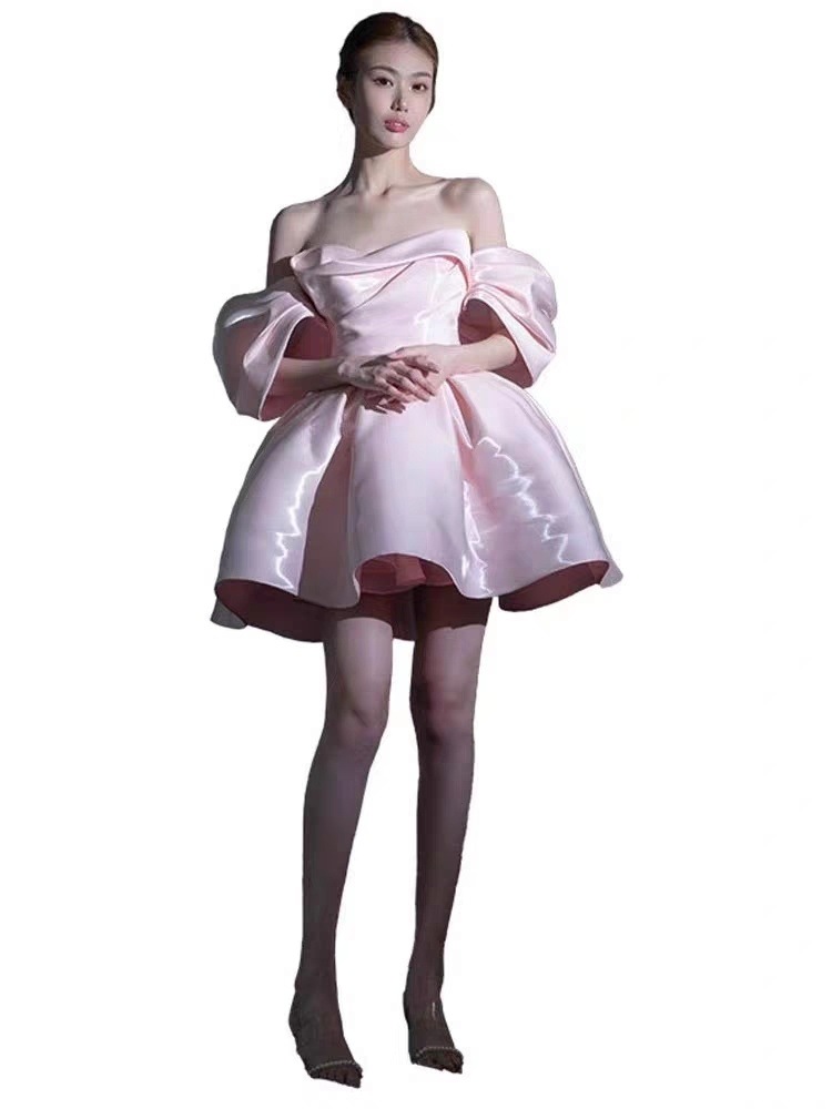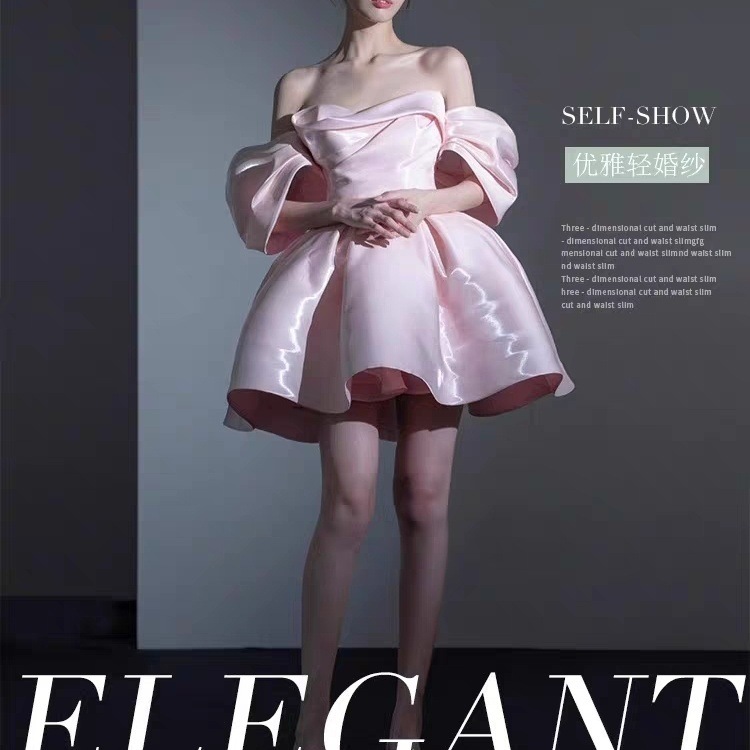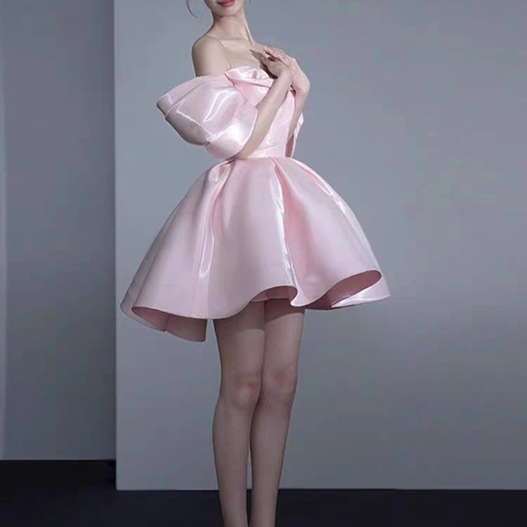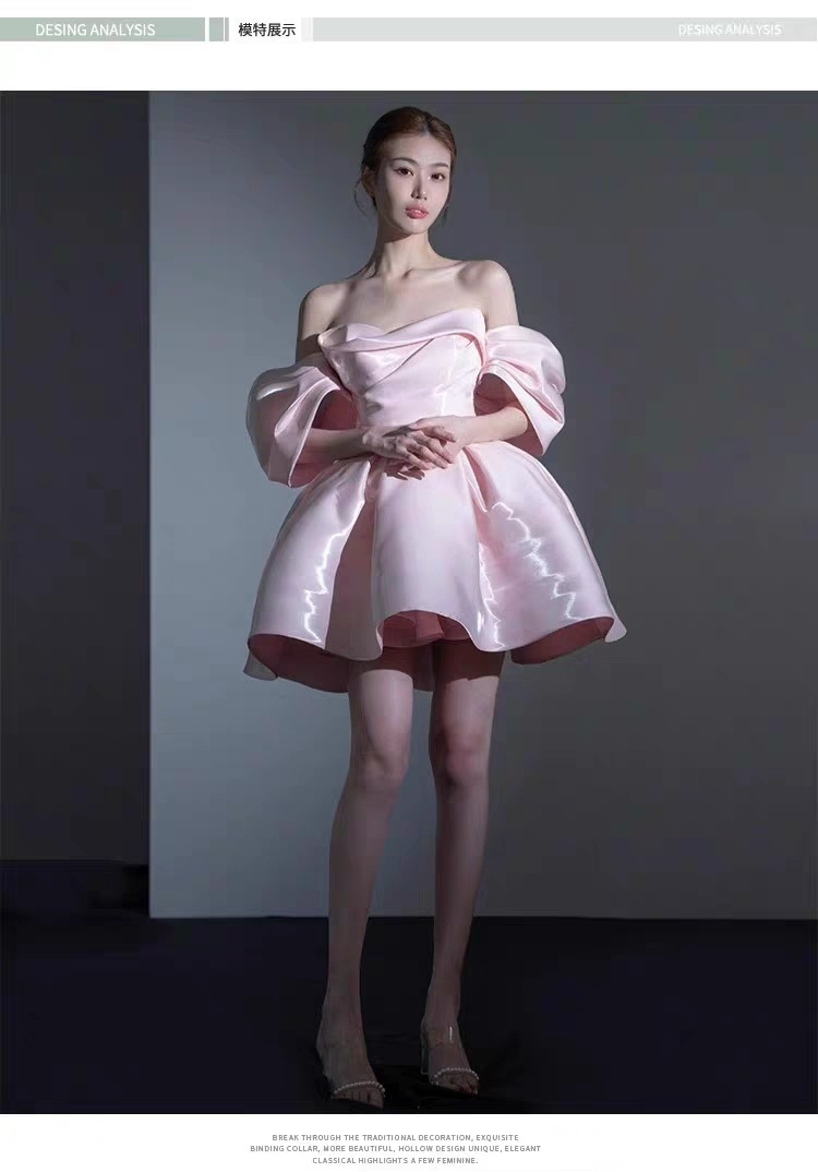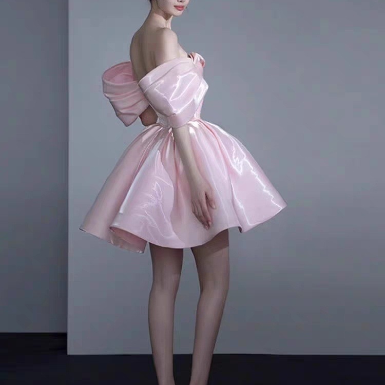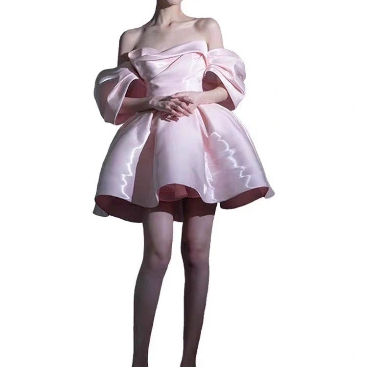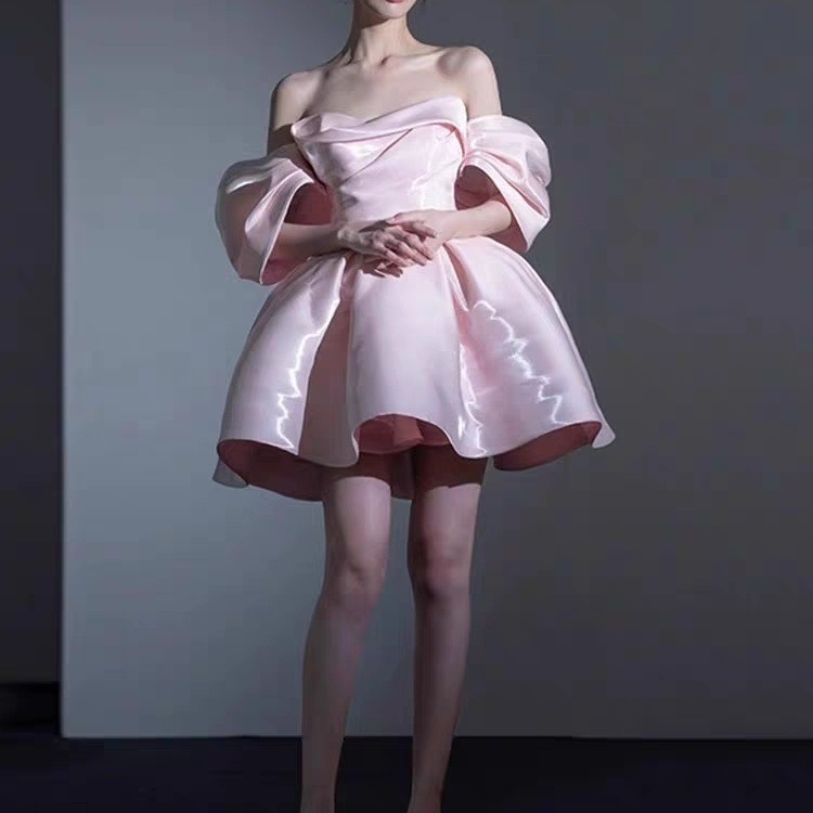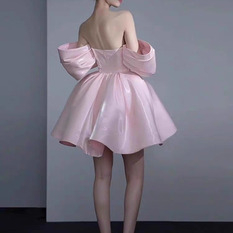 ピンクのワンショルダーの小さなイブニングドレスフレンチライトラグジュアリー誕生日パーティー成人式プリンセスドレス婚約ドレス