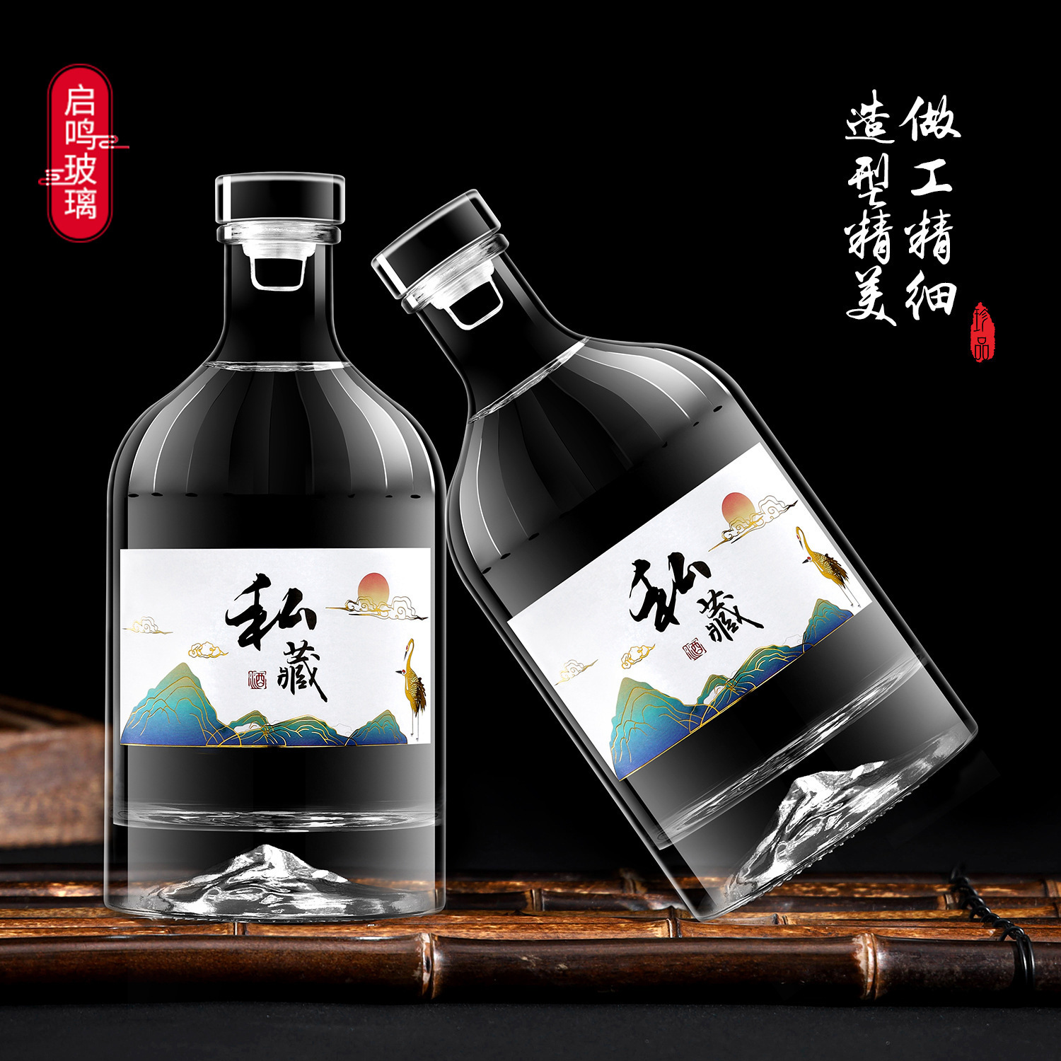 500ml観山デザイン酒瓶 0.5kg 個入り 高級透明白酒瓶 空き酒瓶 厚手ガラス酒瓶 クリスタル