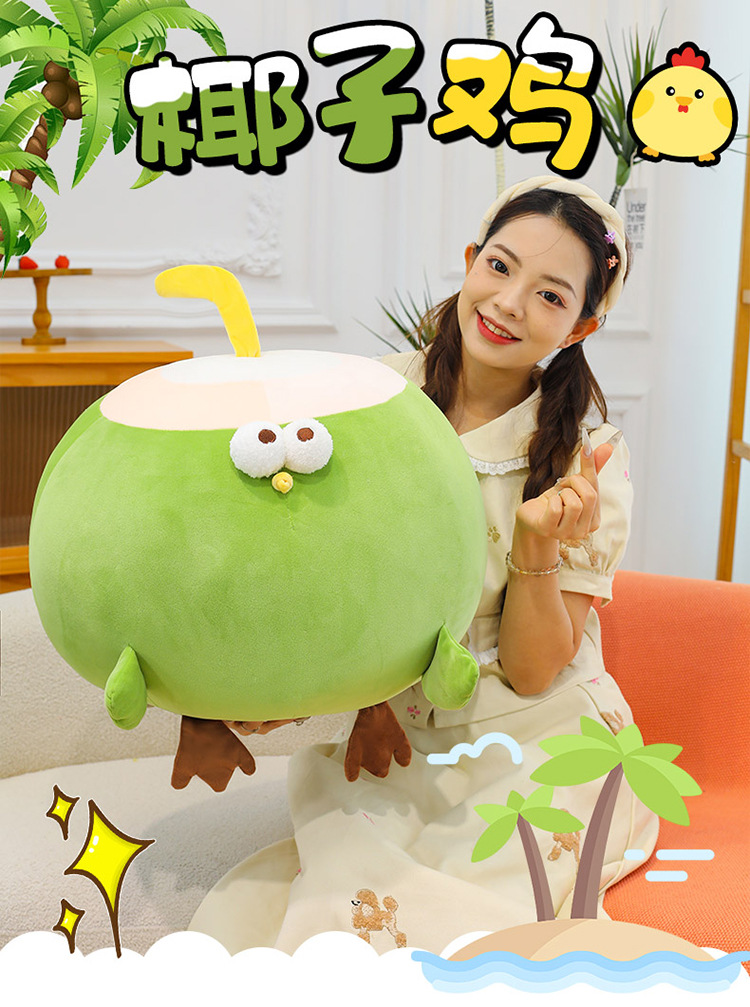 创意水果椰子鸡毛绒玩具公仔玩偶摆件小鸡抱枕娃娃抓机兑换批发