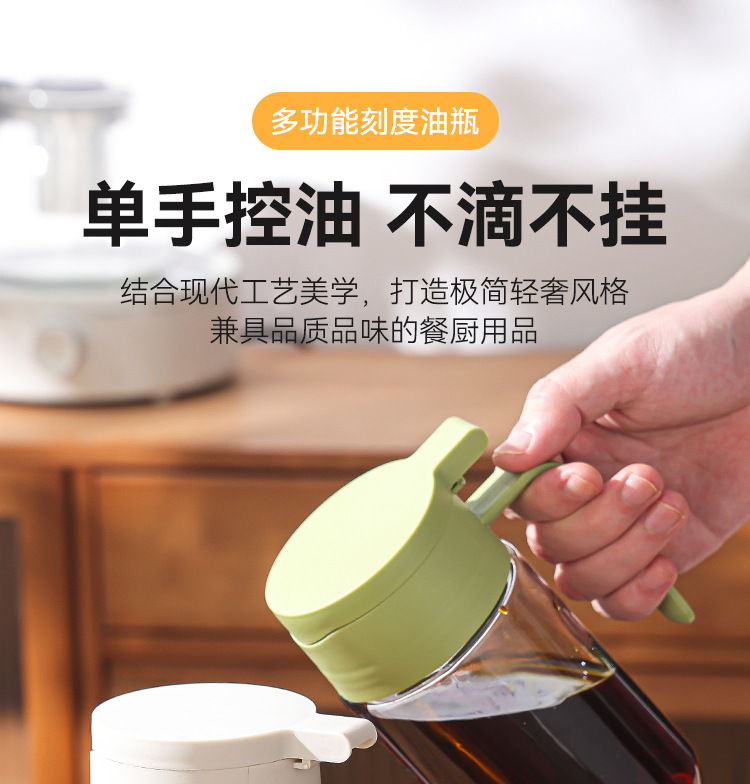 新款带刻度加厚玻璃油瓶厨房家用大容量不挂油醋瓶精准防漏倒油壶