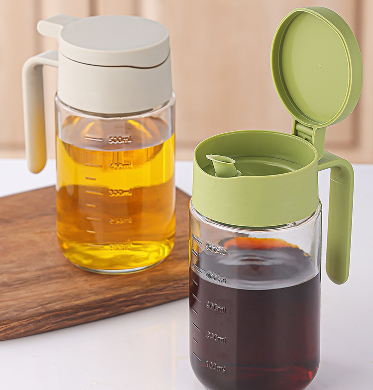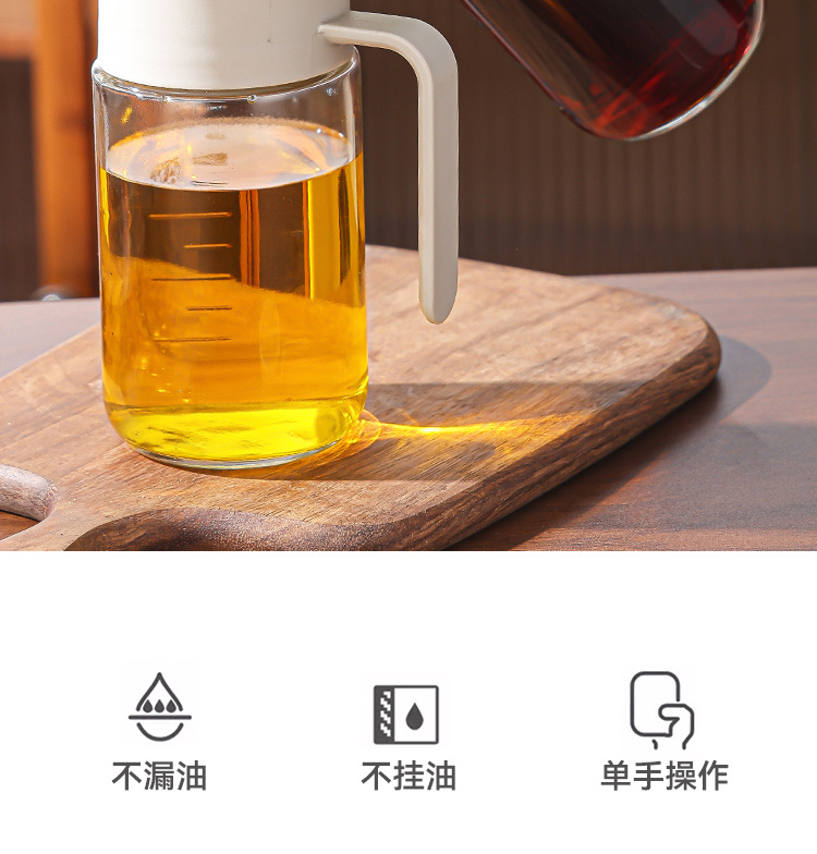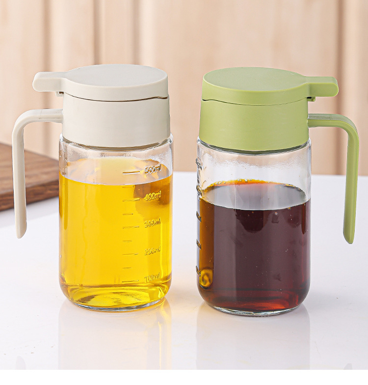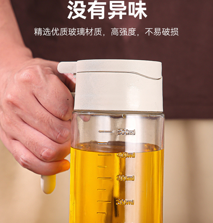厨房玻璃油瓶家用大容量不挂油防漏调料瓶自动开合装带刻度油瓶