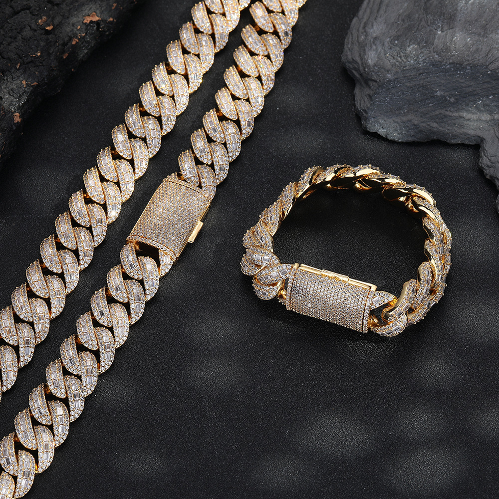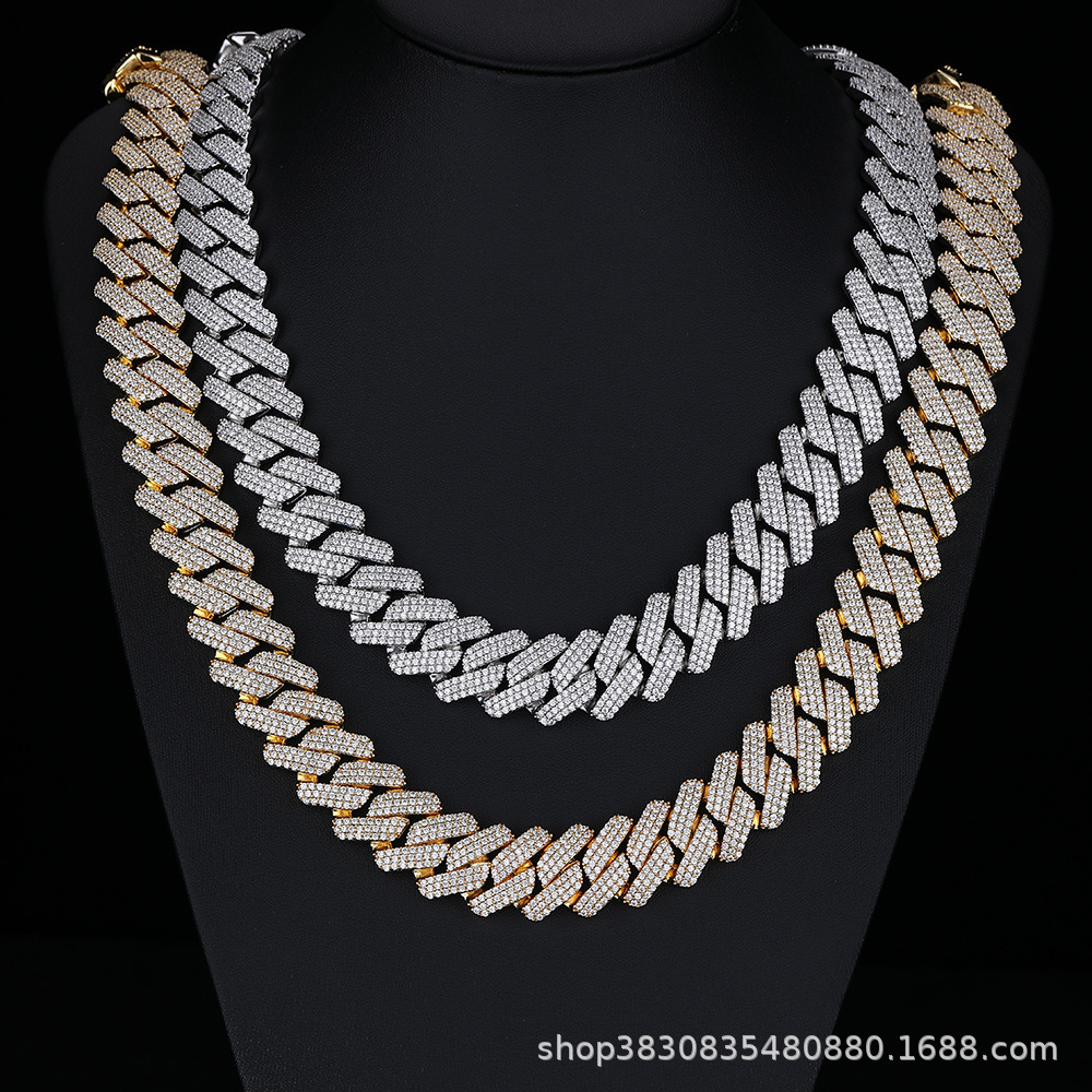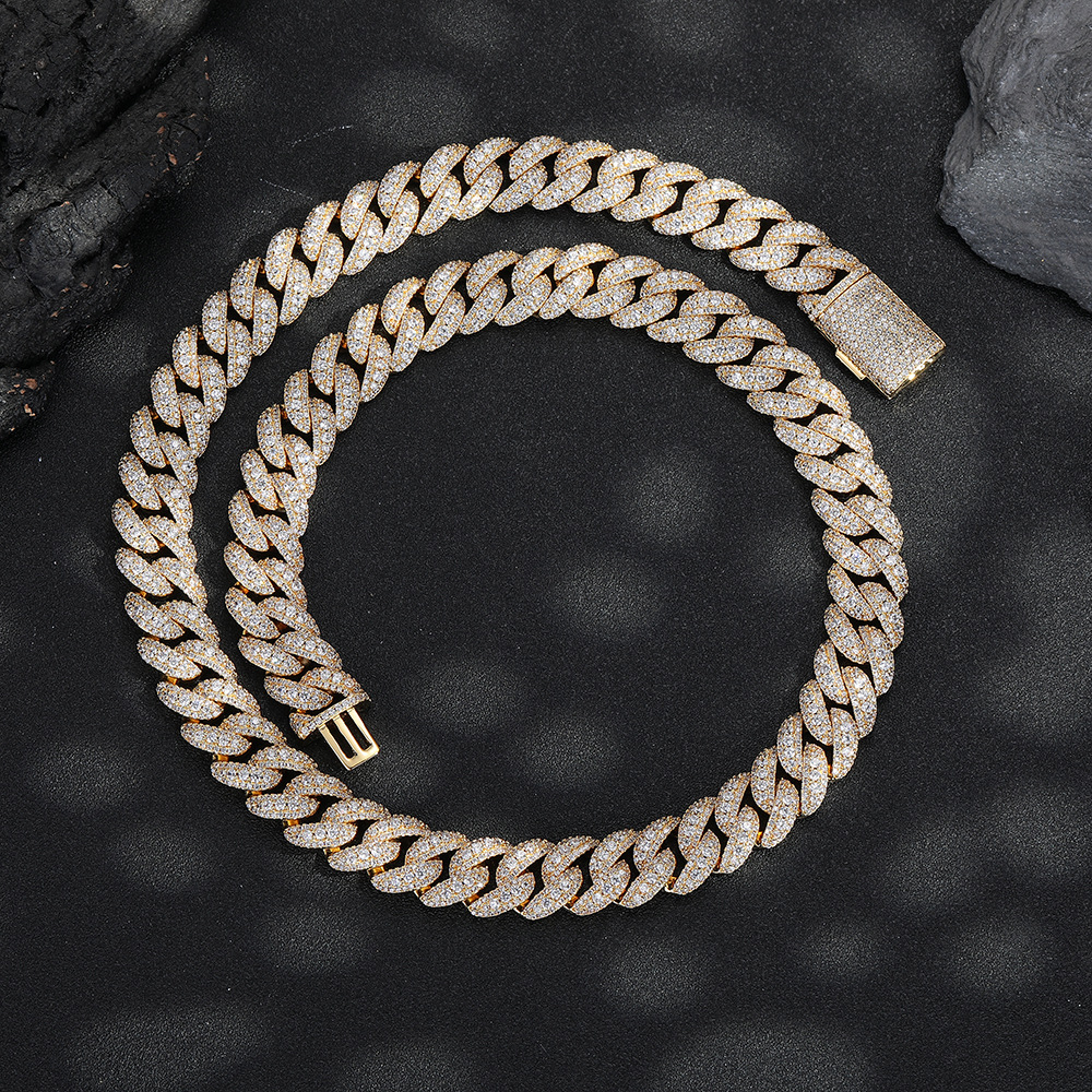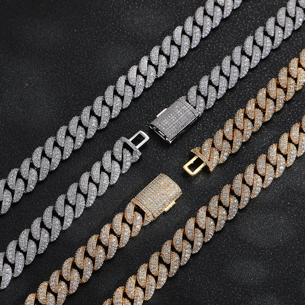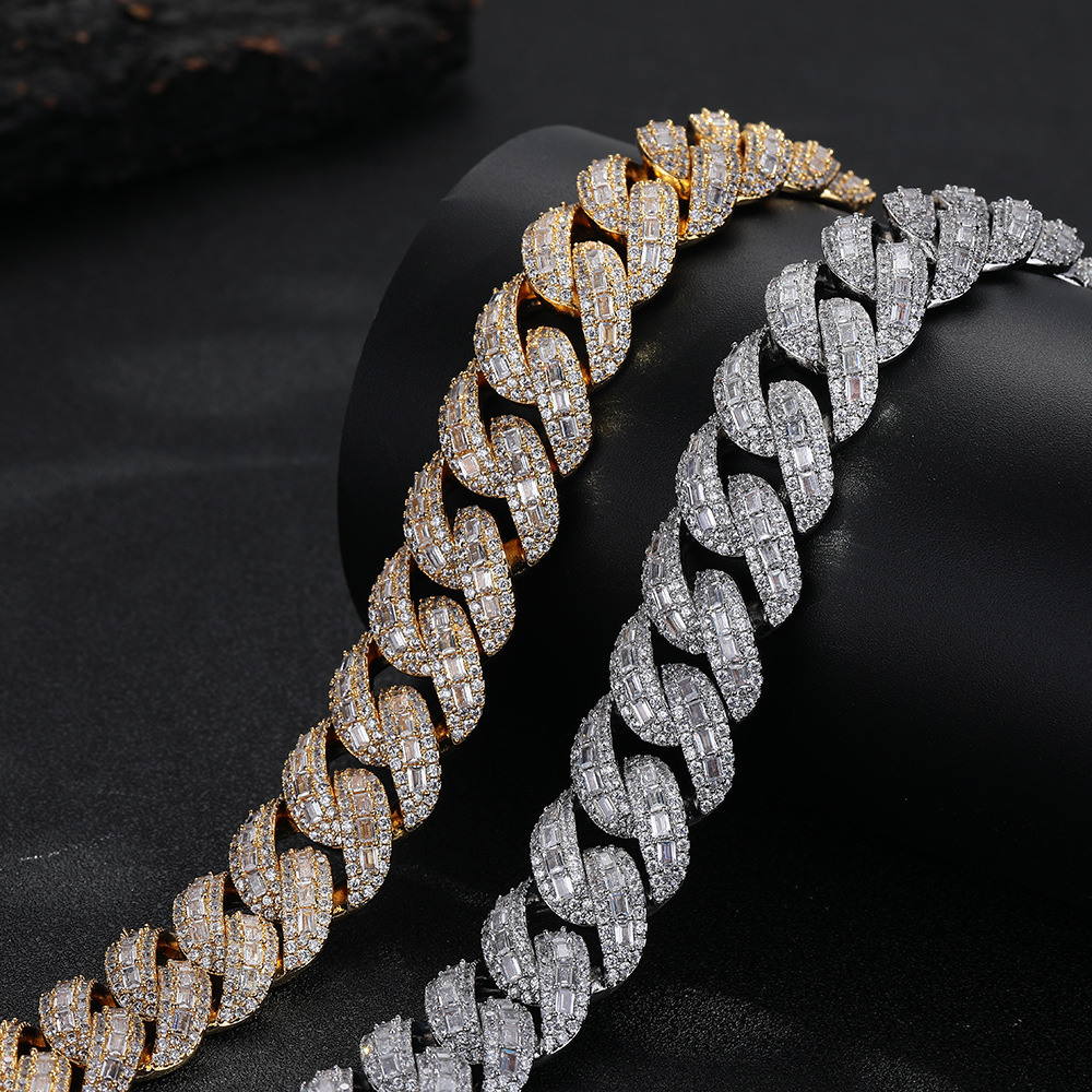 嘻哈说唱风12mm方圆钻古巴项链手链潮流百搭男项链街头风时尚饰品