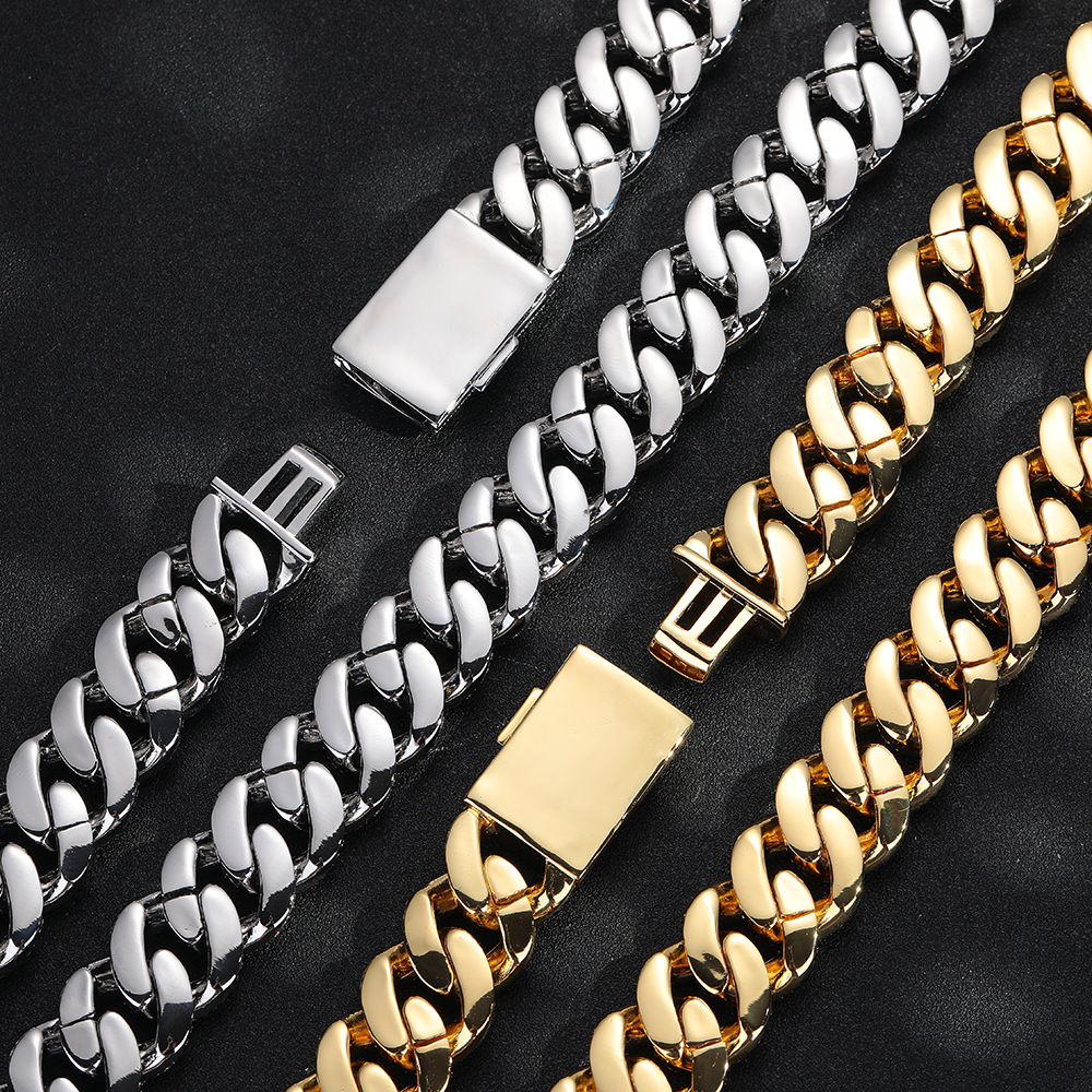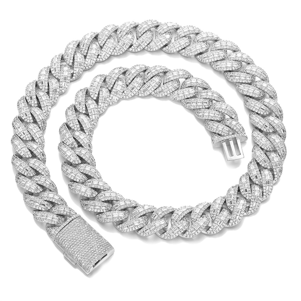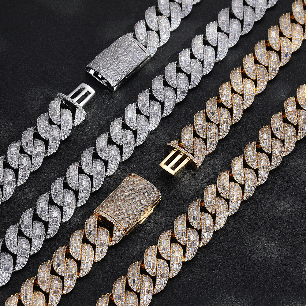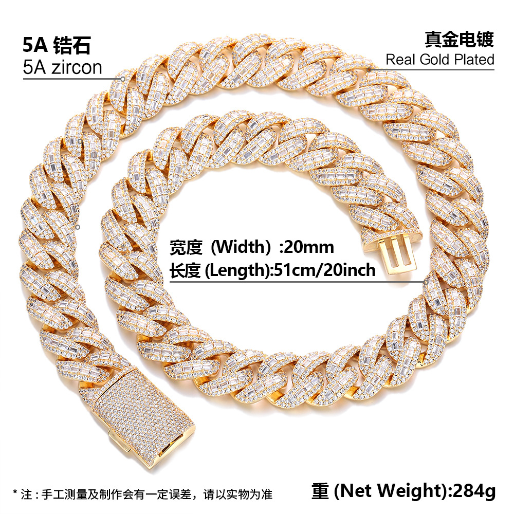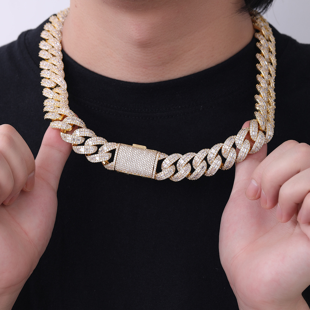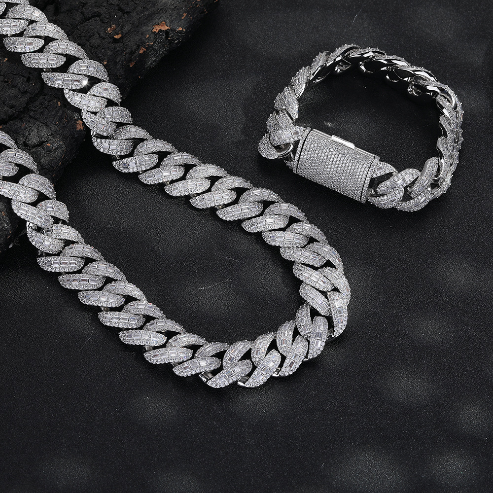 ヨーロッパとアメリカのヒップホップブレスレットニッチハイエンドメンズファッションボックスバックル銅象嵌ジルコンシルバー 18 ミリメートルキューバネックレス