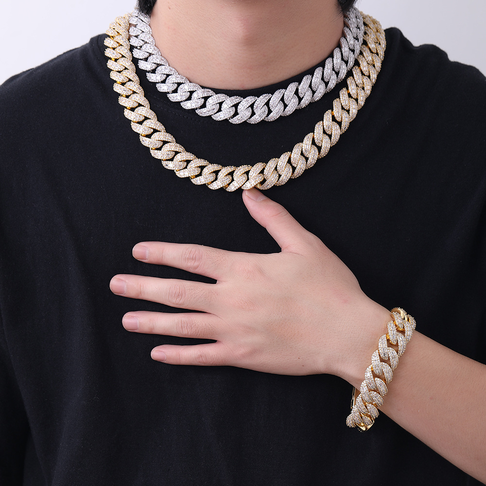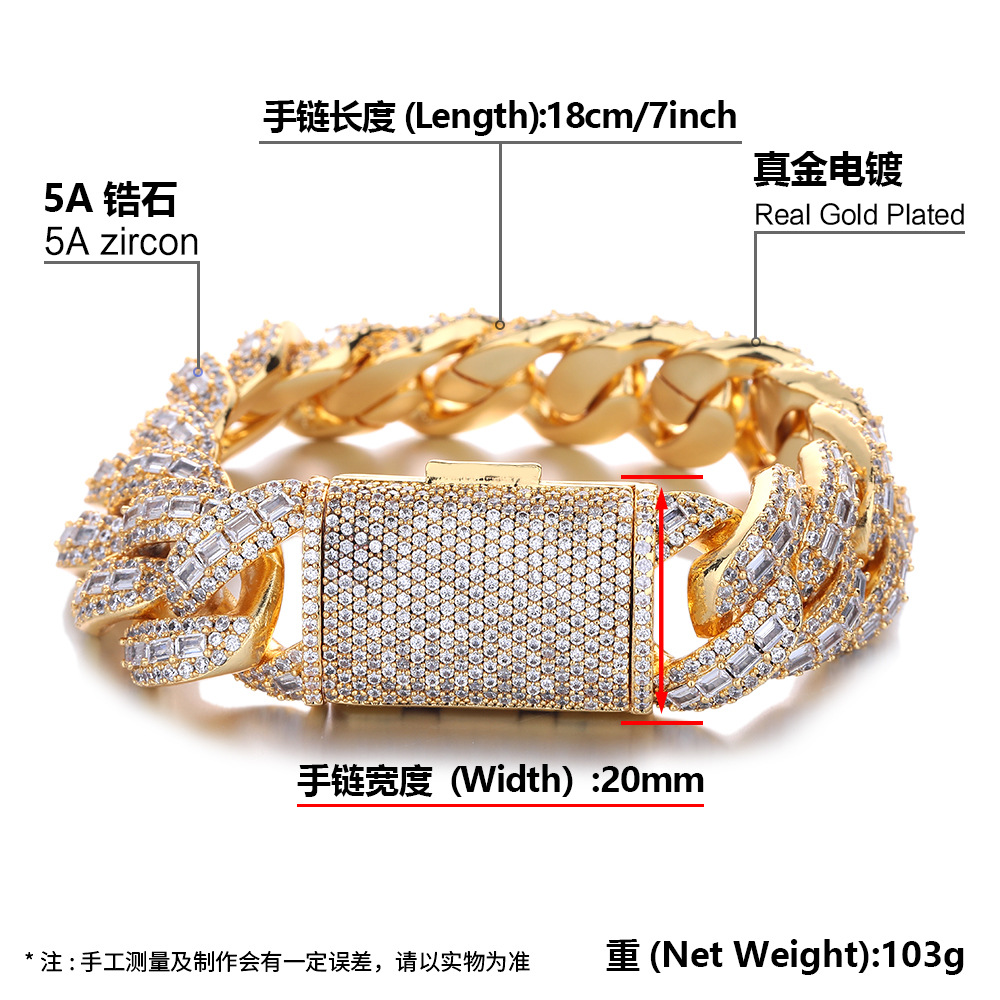 欧美跨境嘻哈22mm泡泡古巴链满钻项链潮牌个性男士嘻哈饰品手链
