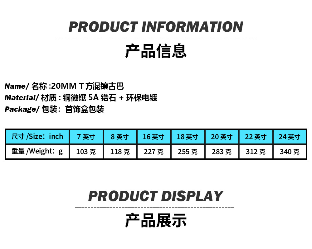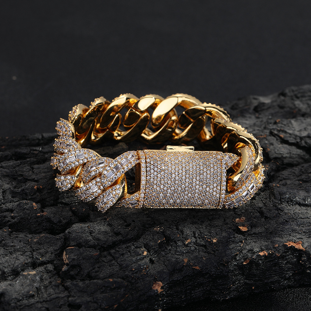 嘻哈说唱百搭18mmT方镶钻锆石古巴项链潮流百搭男士手链饰品