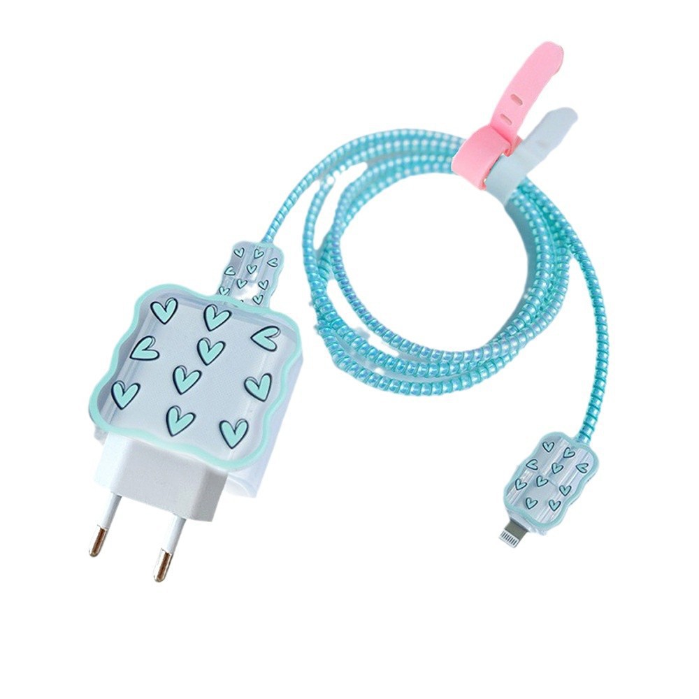 ピンクとブルーのラブプリント EU プラグ Apple 充電器保護カバー 20w/18w 充電ヘッドカバー 14 に適しています