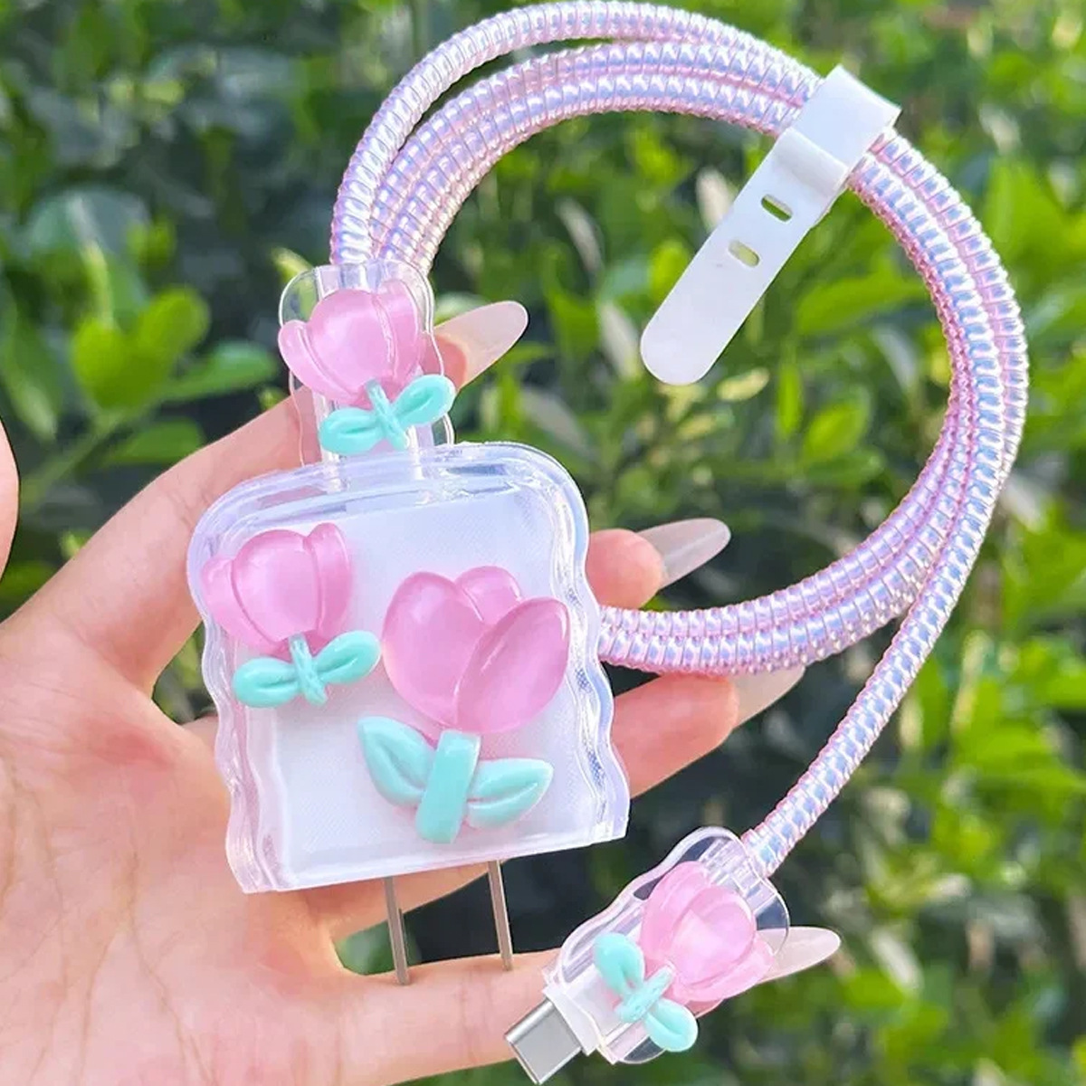 データケーブル保護カバー、ケーブル端保護/Apple/typecインターフェース巻き取りに適した立体的な花