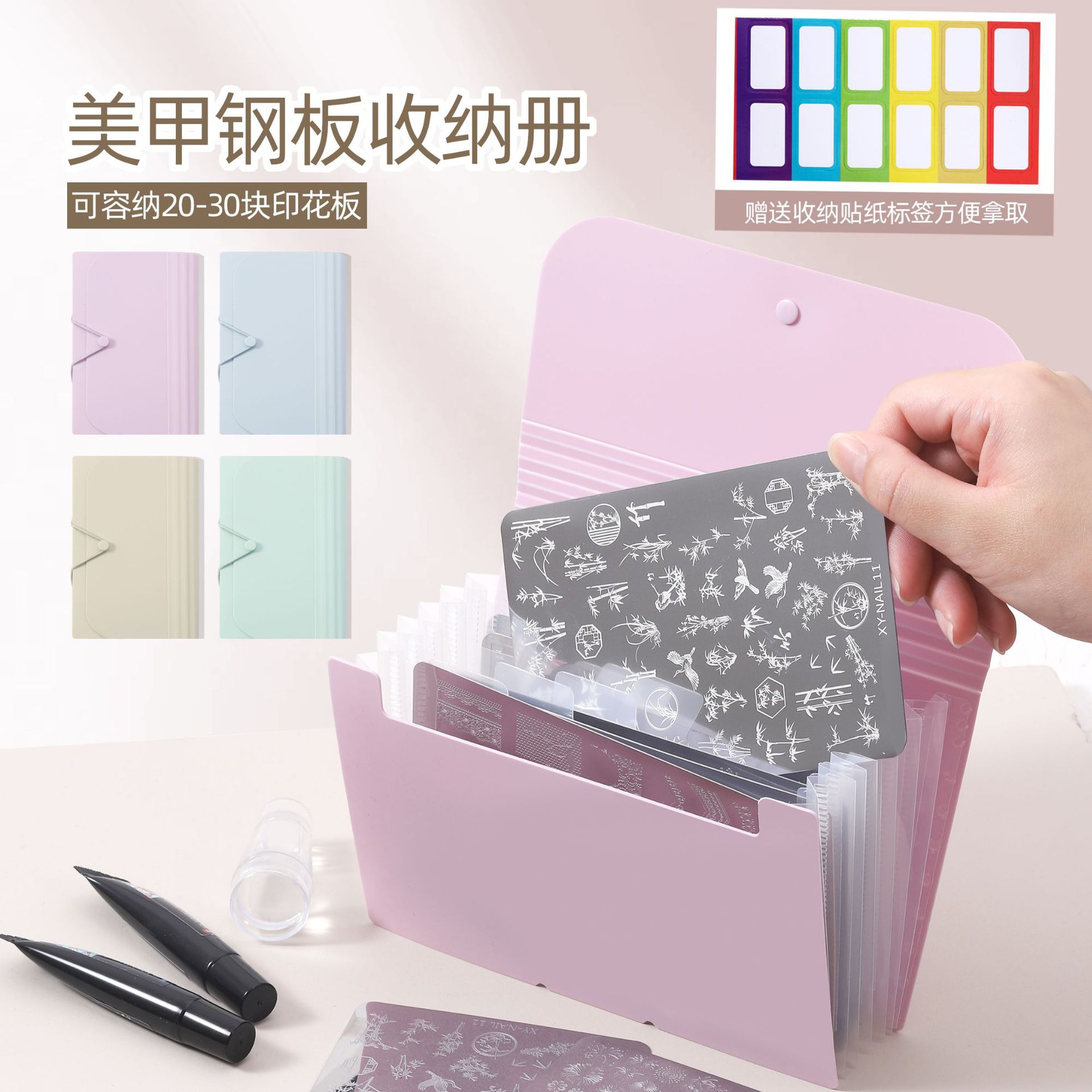 美甲印花钢板收纳册可折叠透明防尘防刮花美甲贴纸钢板收纳包工具