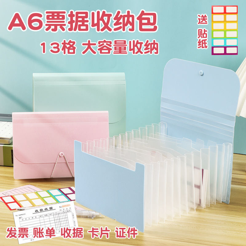 新しい A6 三面シール請求書ホルダー 13 グリッドミニオルガンバッグ PP レインボーインナーページ請求書領収書収納ホルダー卸売
