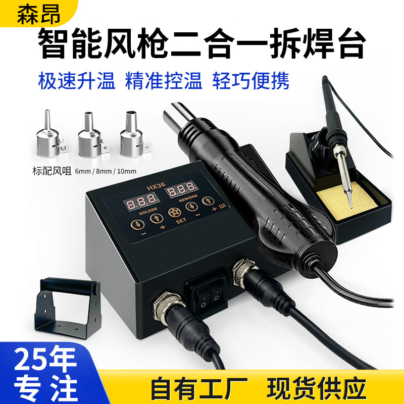 厂家直供恒温加热烙铁电焊台风枪二合一热风枪拆焊台返修站调温