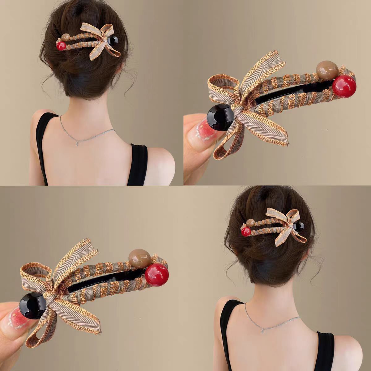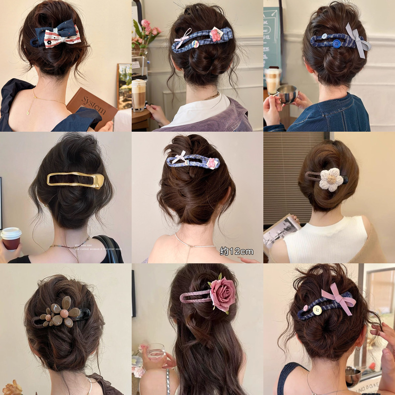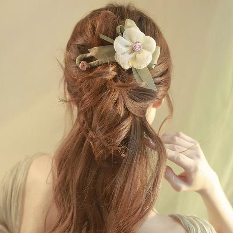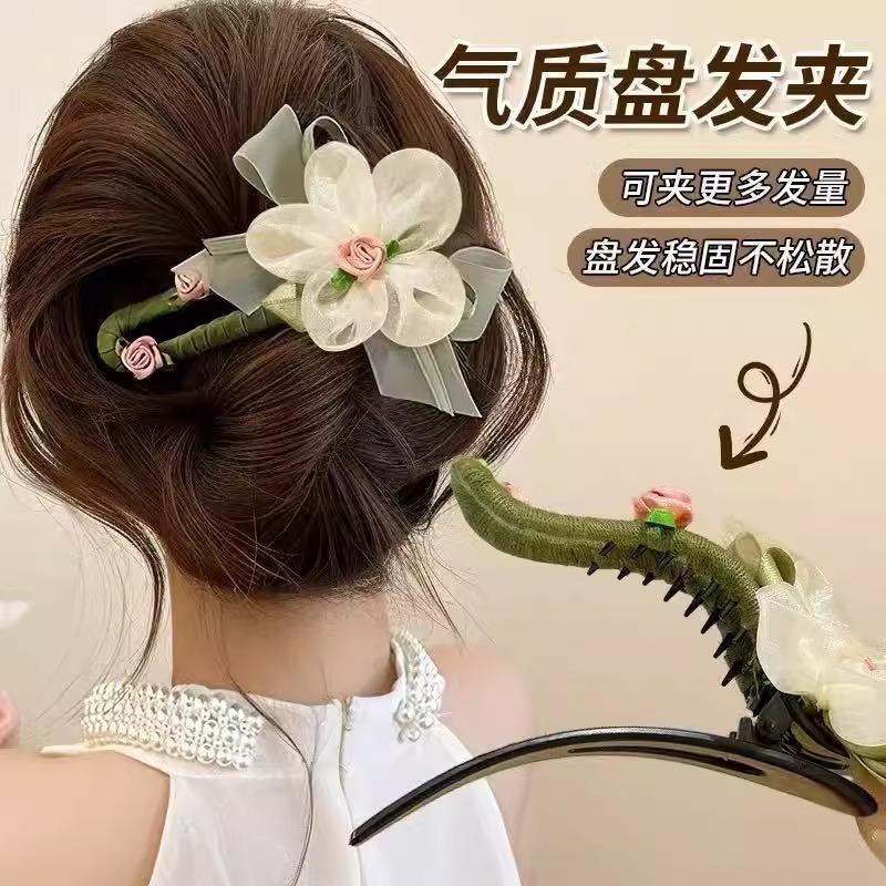 森系の花のカモの口のクリップの女性の蝶結びの2025の新型の高級感の気質の盤髪のクリップの髪の飾り