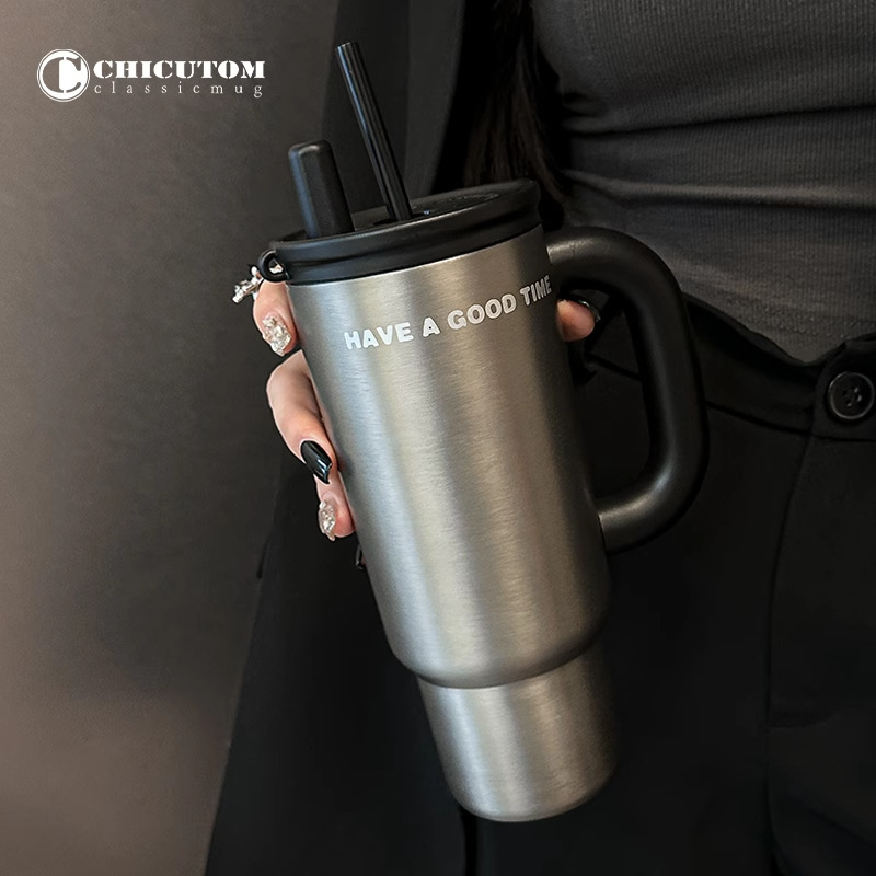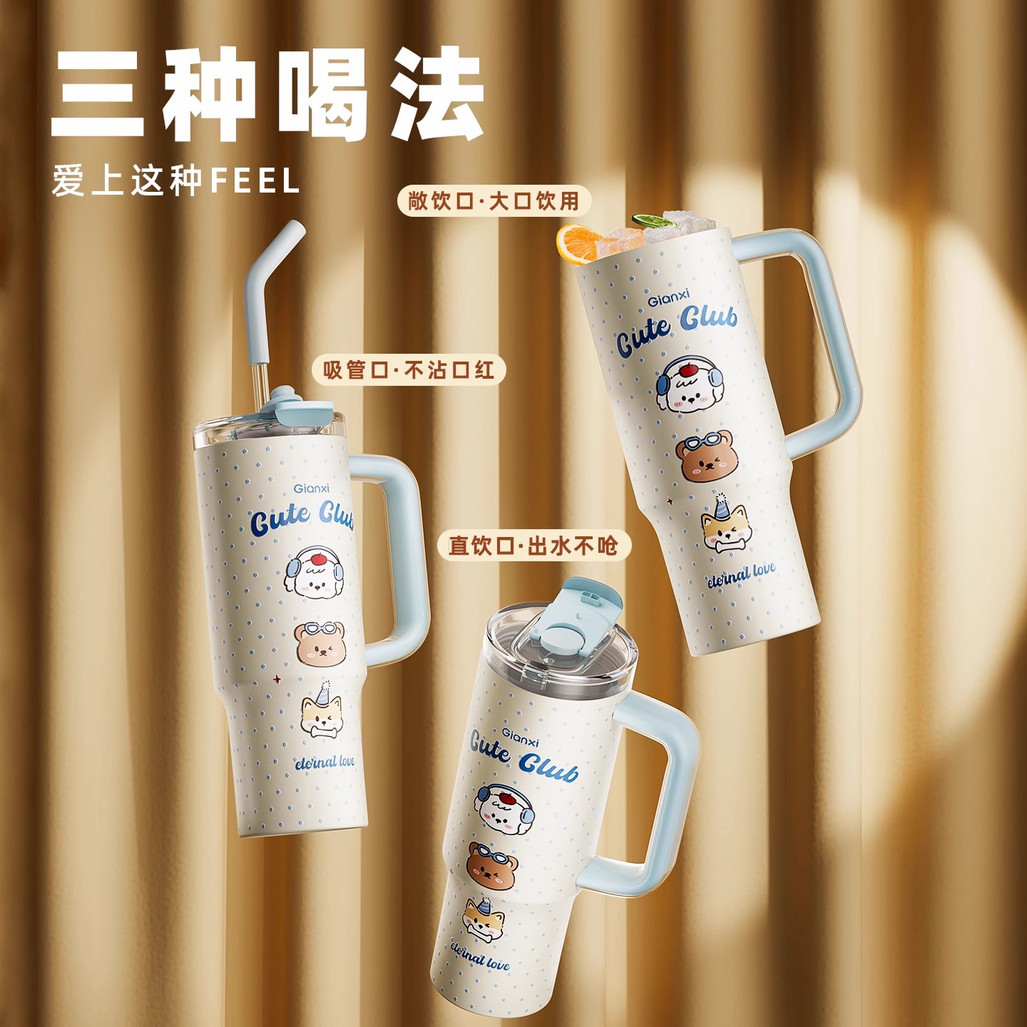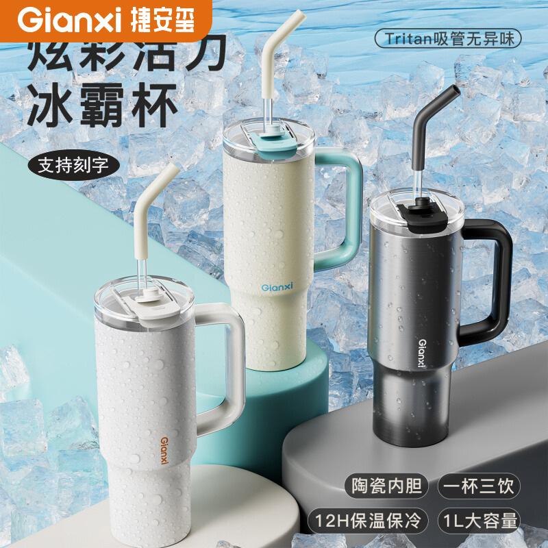 陶瓷内胆手柄巨无霸保温杯网红大容量吸管女生新款高颜值冰霸杯