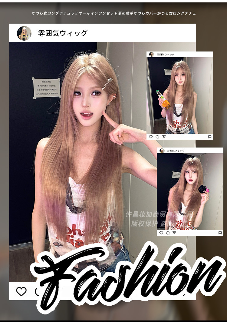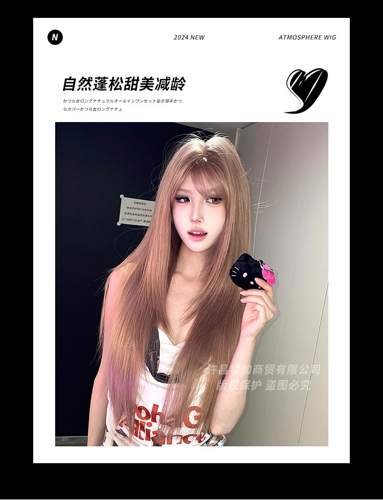 化粧とかつらの女性の長髪韓国式女性団の髪型ミルクティーのシャンパンの長いストレート髪は自然にリアルな全頭カバーのかつらです。
