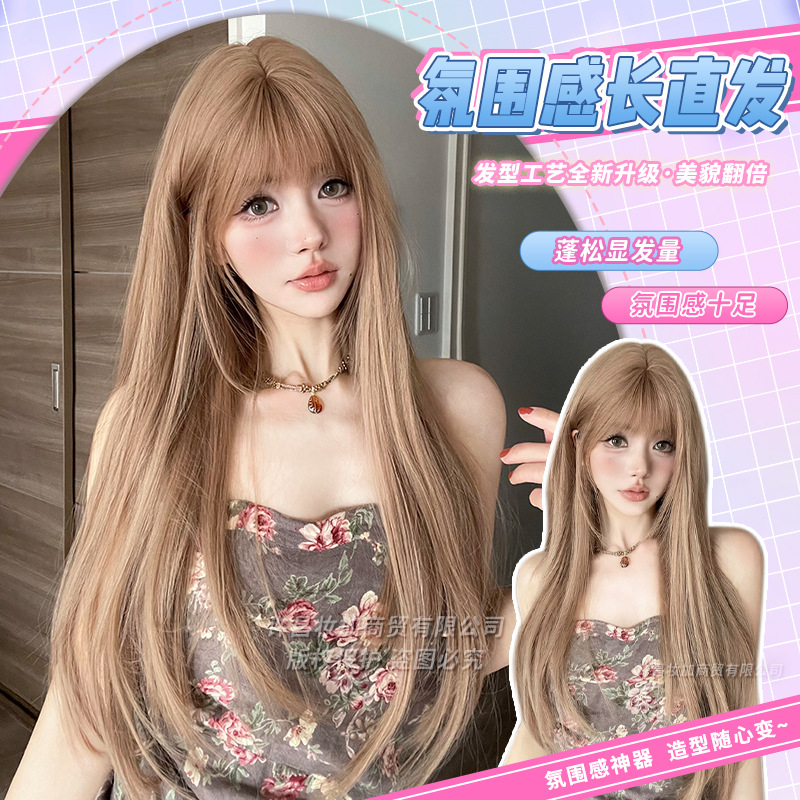 妆加假发女日常网红长直发lolita夏季新款逼真齐刘海jk全头套式